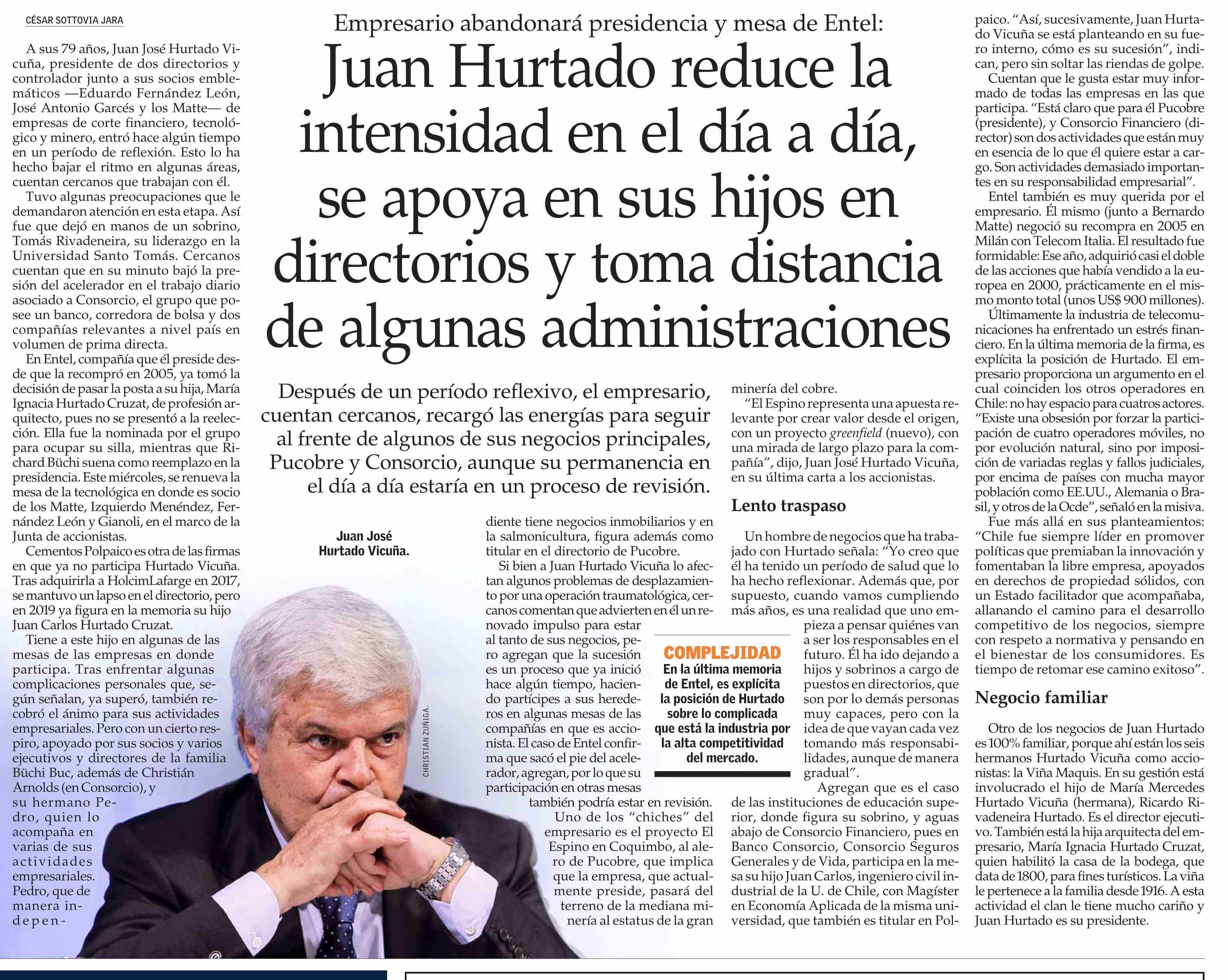 Juan Hurtado reduce la intensidad en el día a día, se apoya en sus hijos en directorios y toma distancia de algunas administraciones