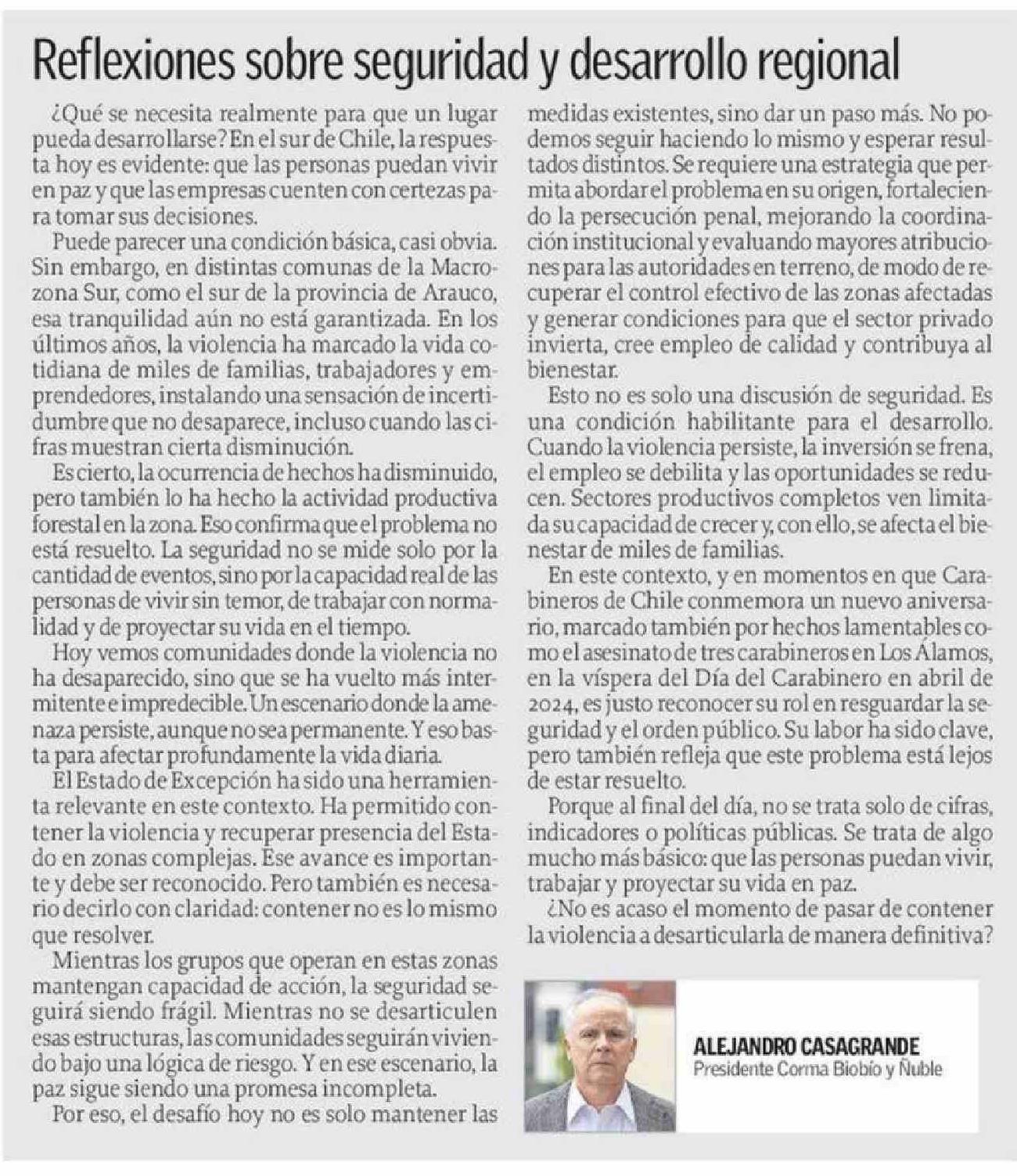 Columnas de Opinión: Reflexiones sobre seguridad y desarrollo regional