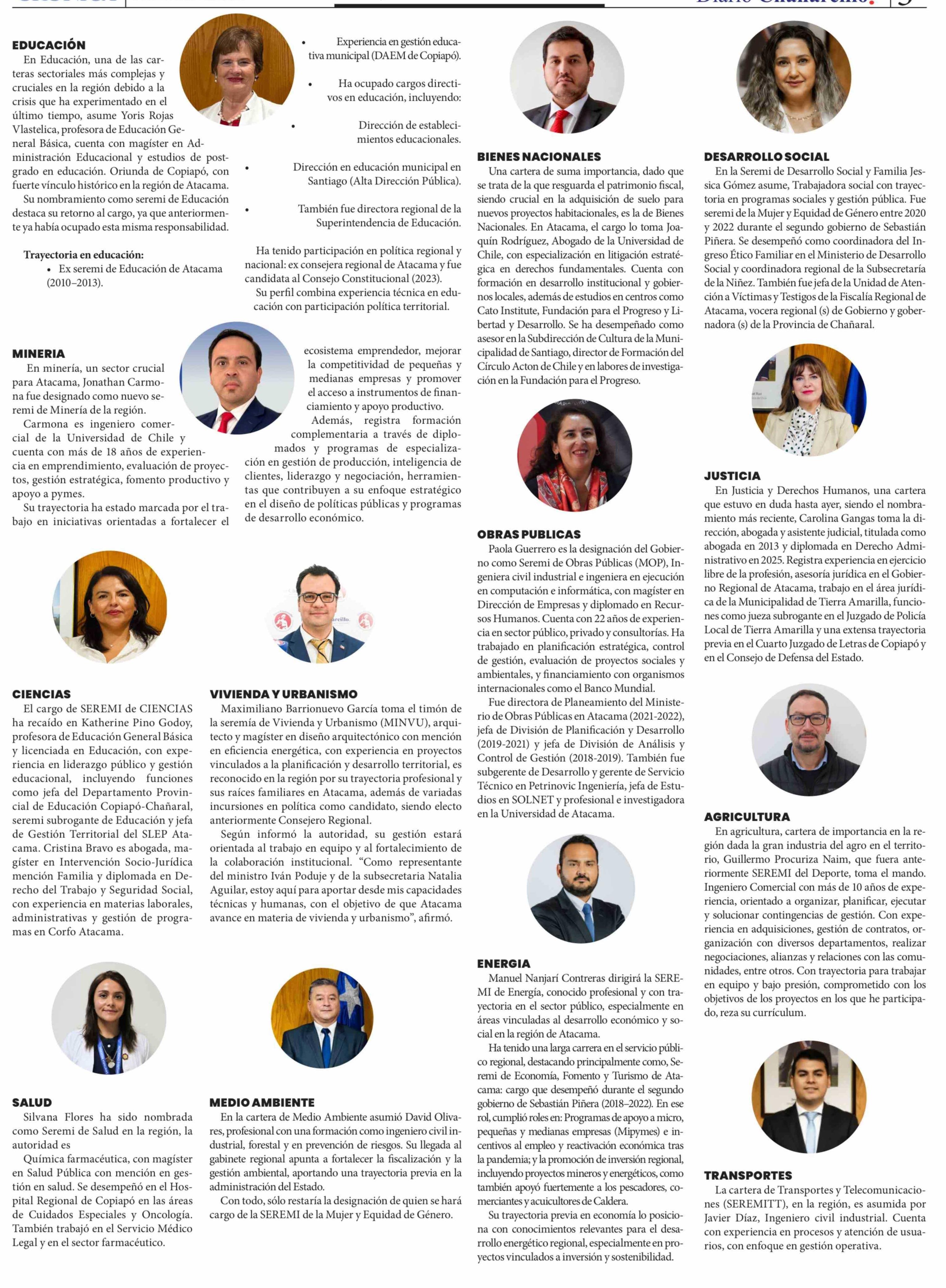 Solo falta Mujer y Equidad de Género: Estos son los nombres y perfiles de los 19 SEREMIS nombrados en Atacama
