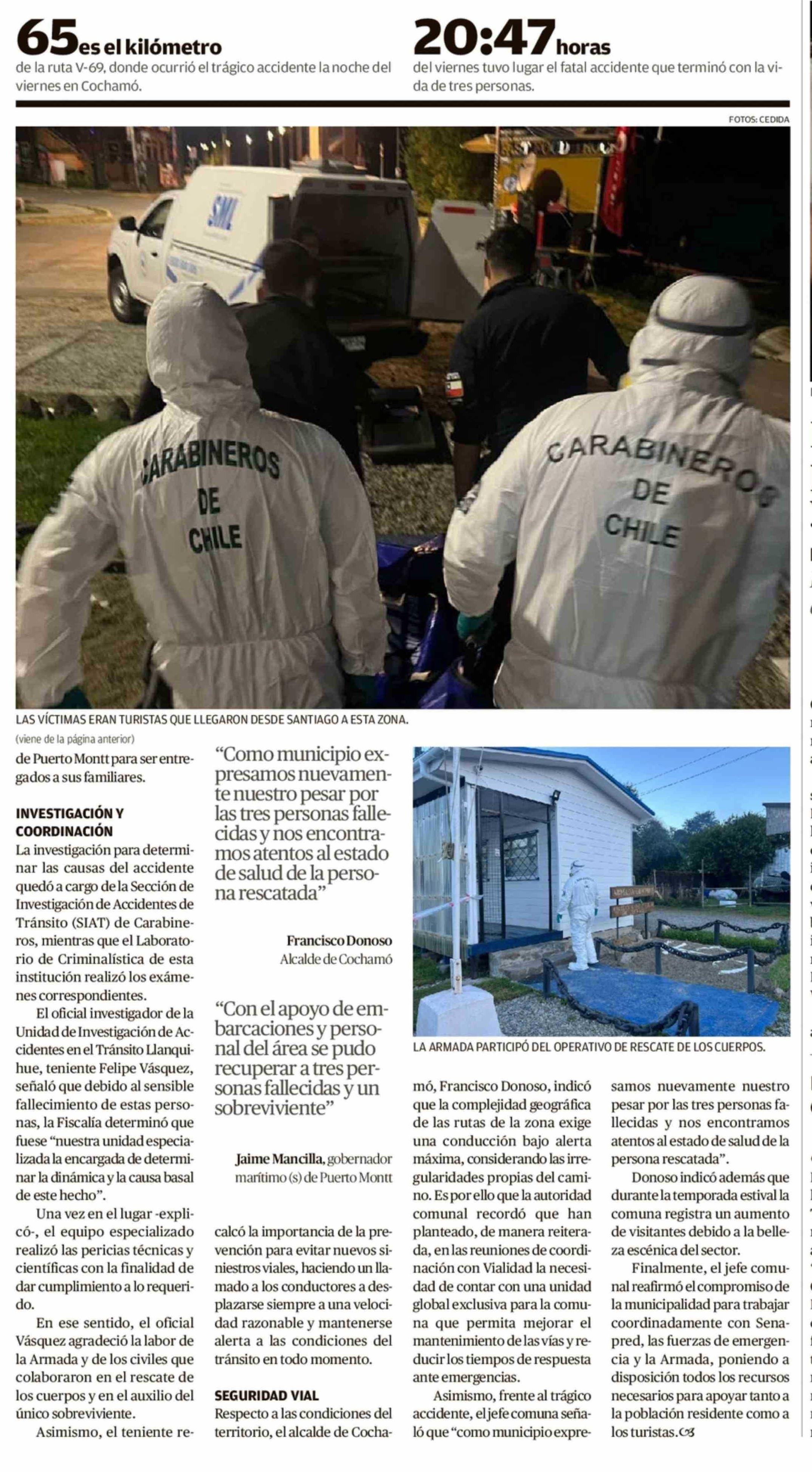 Título: Tres personas fallecieron cuando auto volcó al mar de Cochamó