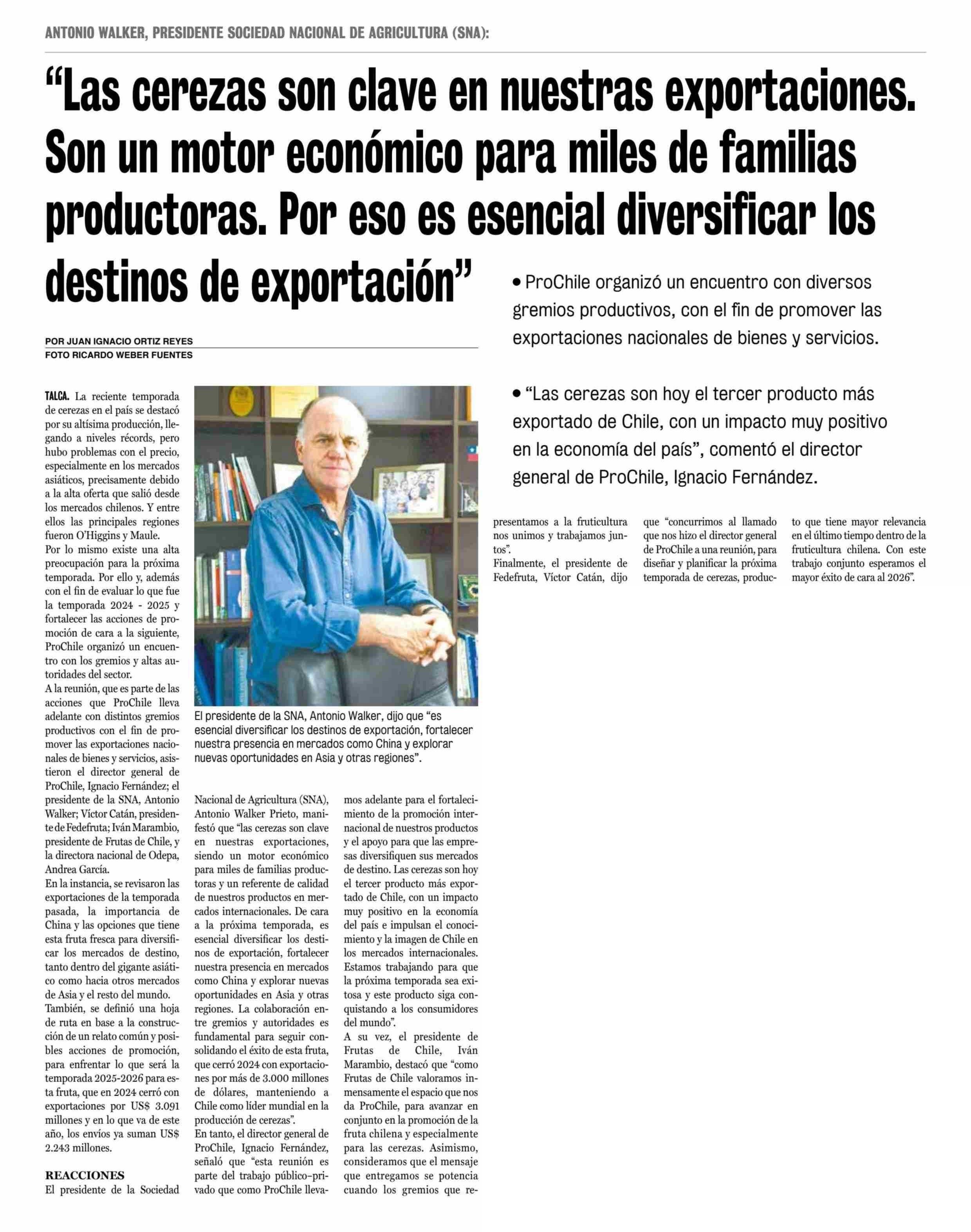 Título: “Las cerezas son clave en nuestras exportaciones. Son un motor económico para miles de familias productoras. Por eso es esencial diversificar los destinos de exportación”