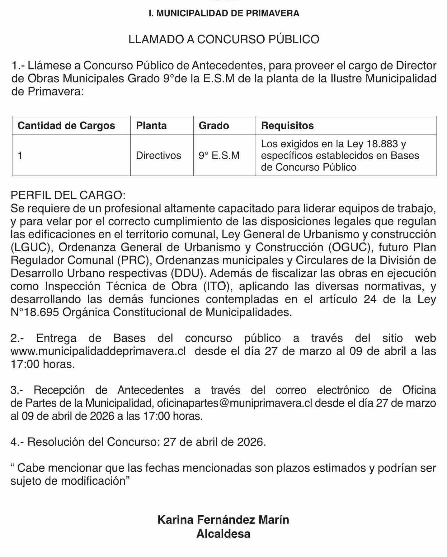 Aviso Licitaciones: LLAMADO A CONCURSO PÚBLICO