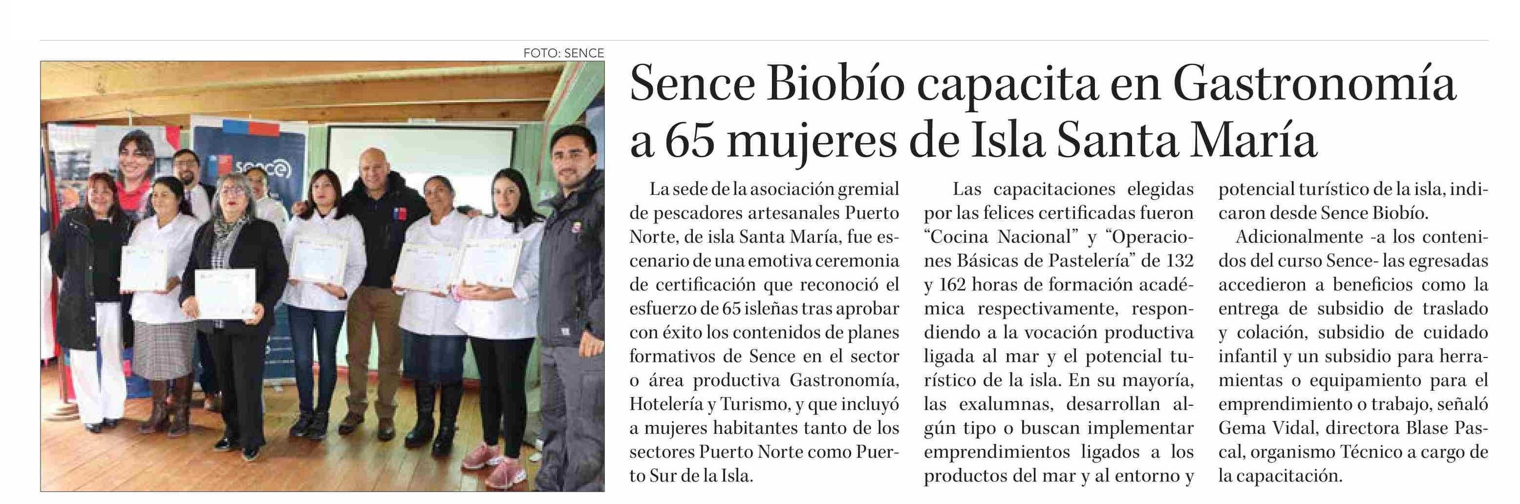 Sence Biobío capacita en Gastronomía a 65 mujeres de Isla Santa María