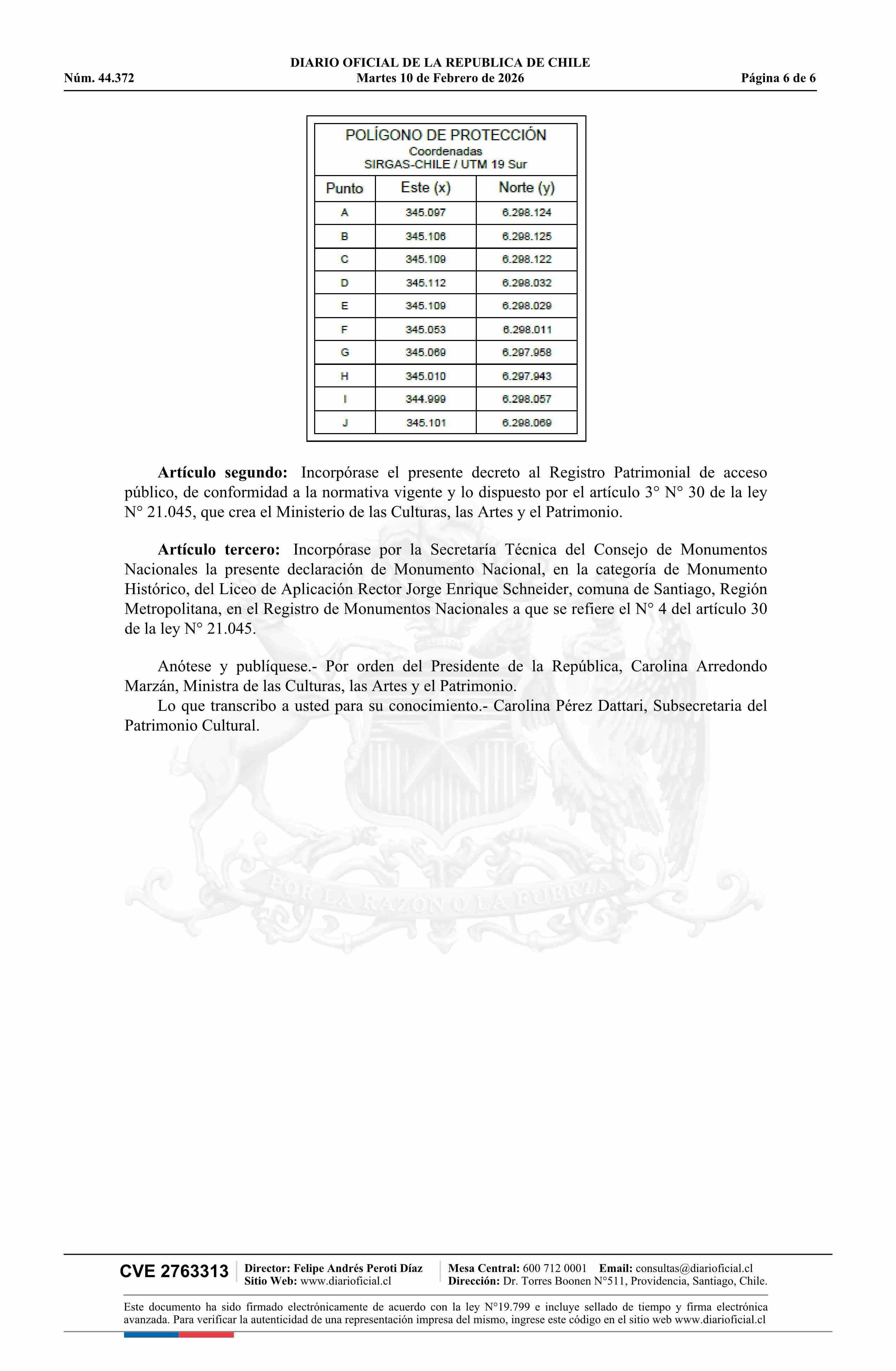 | Título: | Decreto exento número 1, de 2026.- Declara Monumento Nacional, en la categoría de Monumento Histórico, el Liceo de Aplicación Rector Jorge Enrique Schneider, comuna de Santiago, Región Metropolitana |