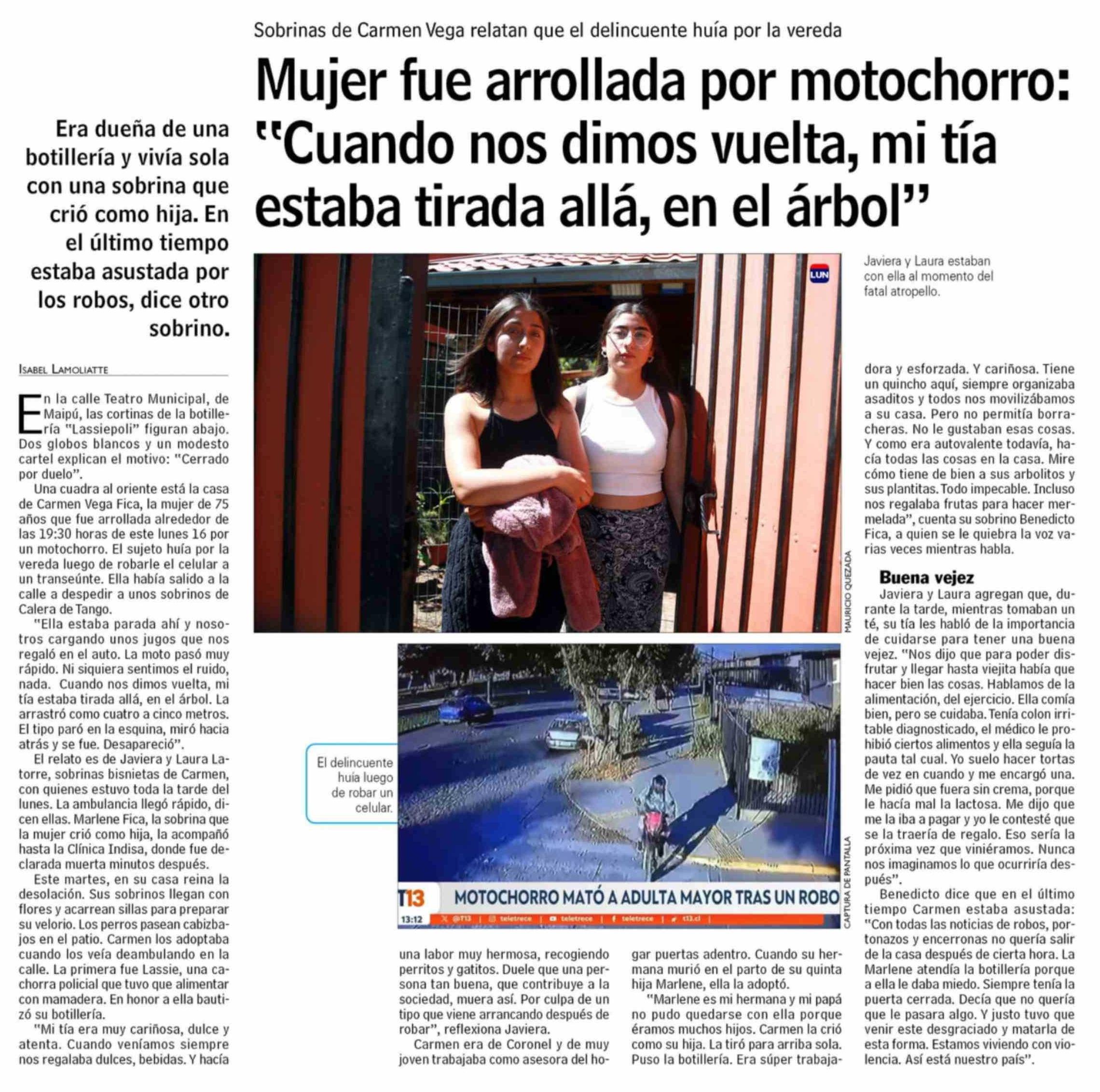 Mujer fue arrollada por motochorro: "Cuando nos dimos vuelta, mi tía estaba tirada allá, en el árbol"