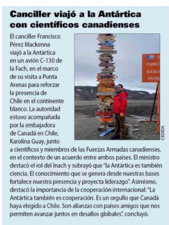 Canciller viajó a la Antártica con científicos canadienses