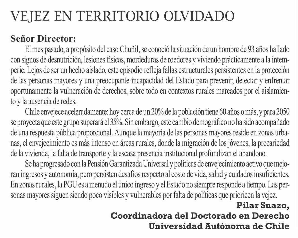 Cartas: VEJEZ EN TERRITORIO OLVIDADO