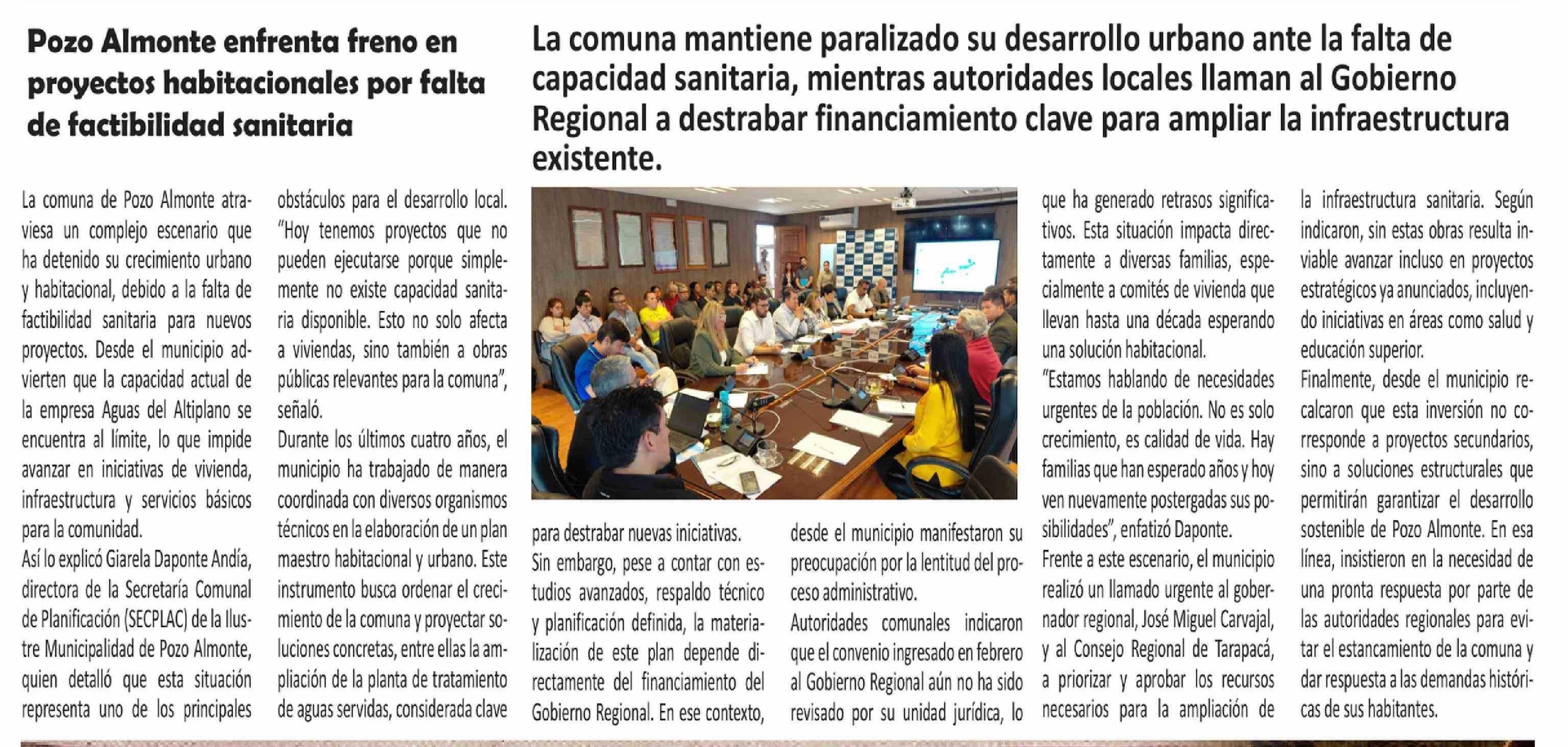 Pozo Almonte enfrenta freno en proyectos habitacionales por falta de factibilidad sanitaria