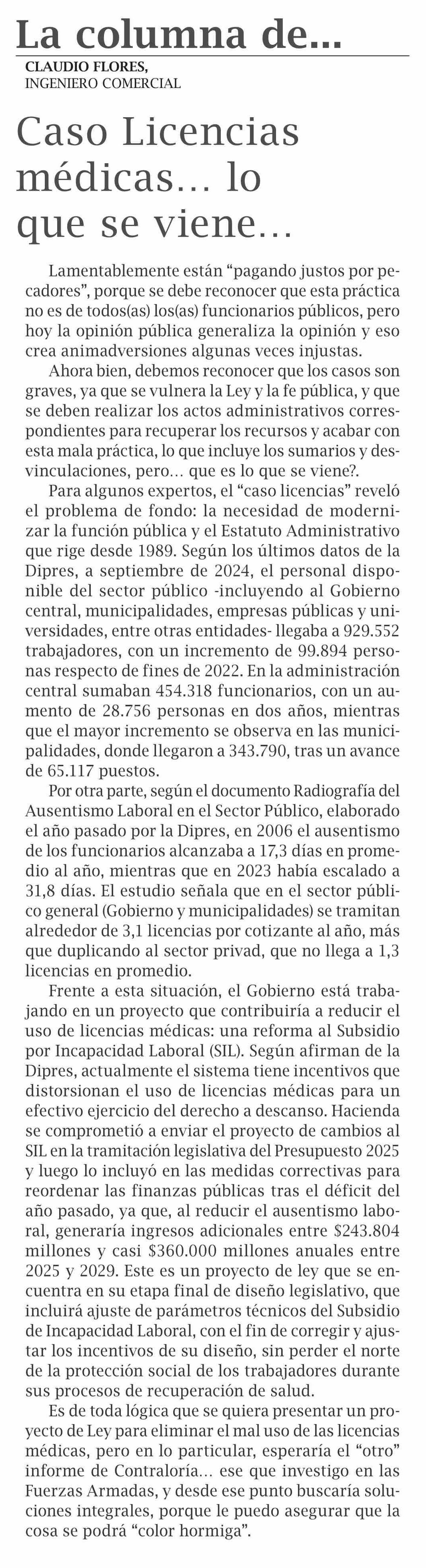 COLUMNAS DE OPINIÓN: Caso Licencias médicas... lo que se viene...