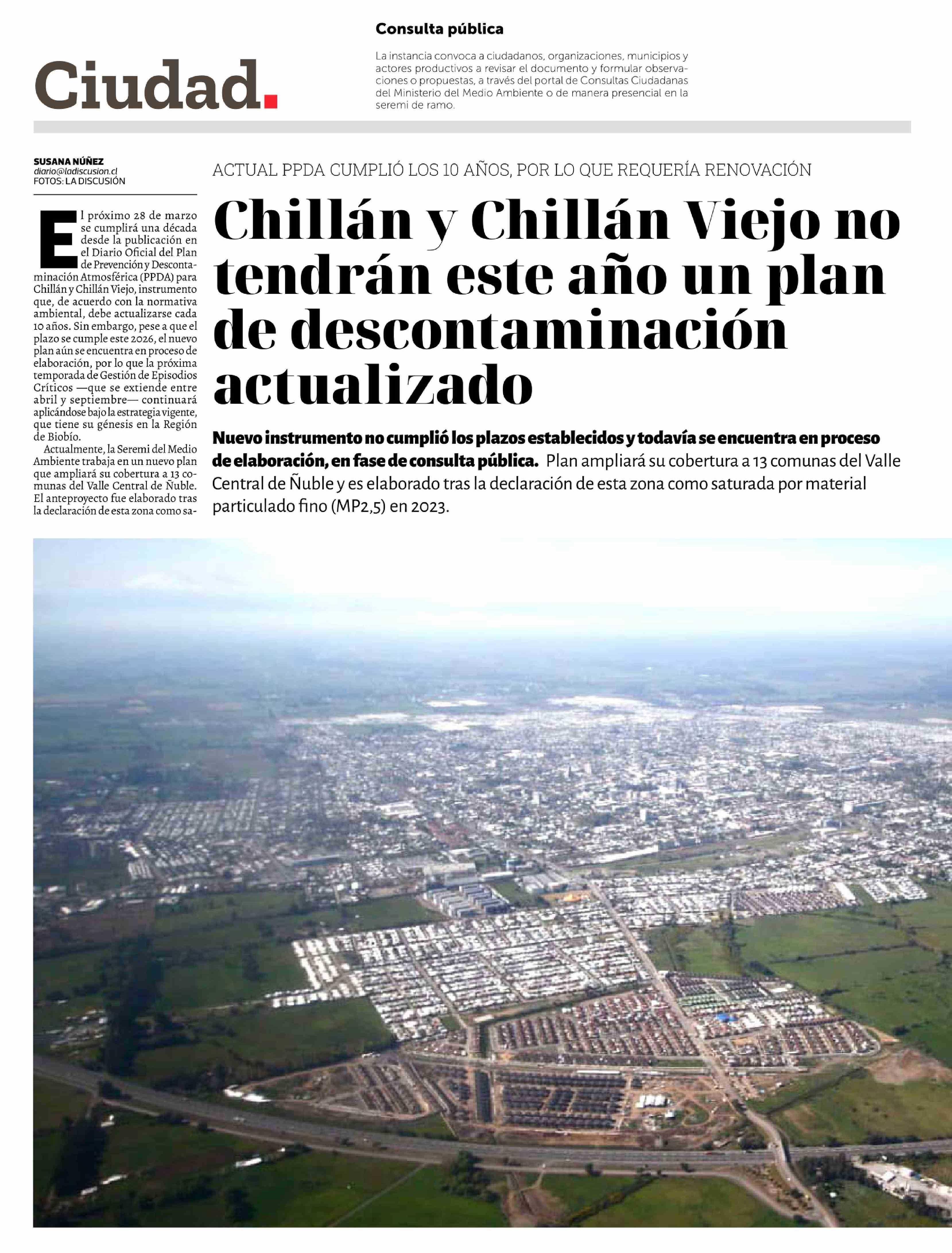 Chillán v Chillán Viejo no tendrán este año un plan de descontaminación actualizado