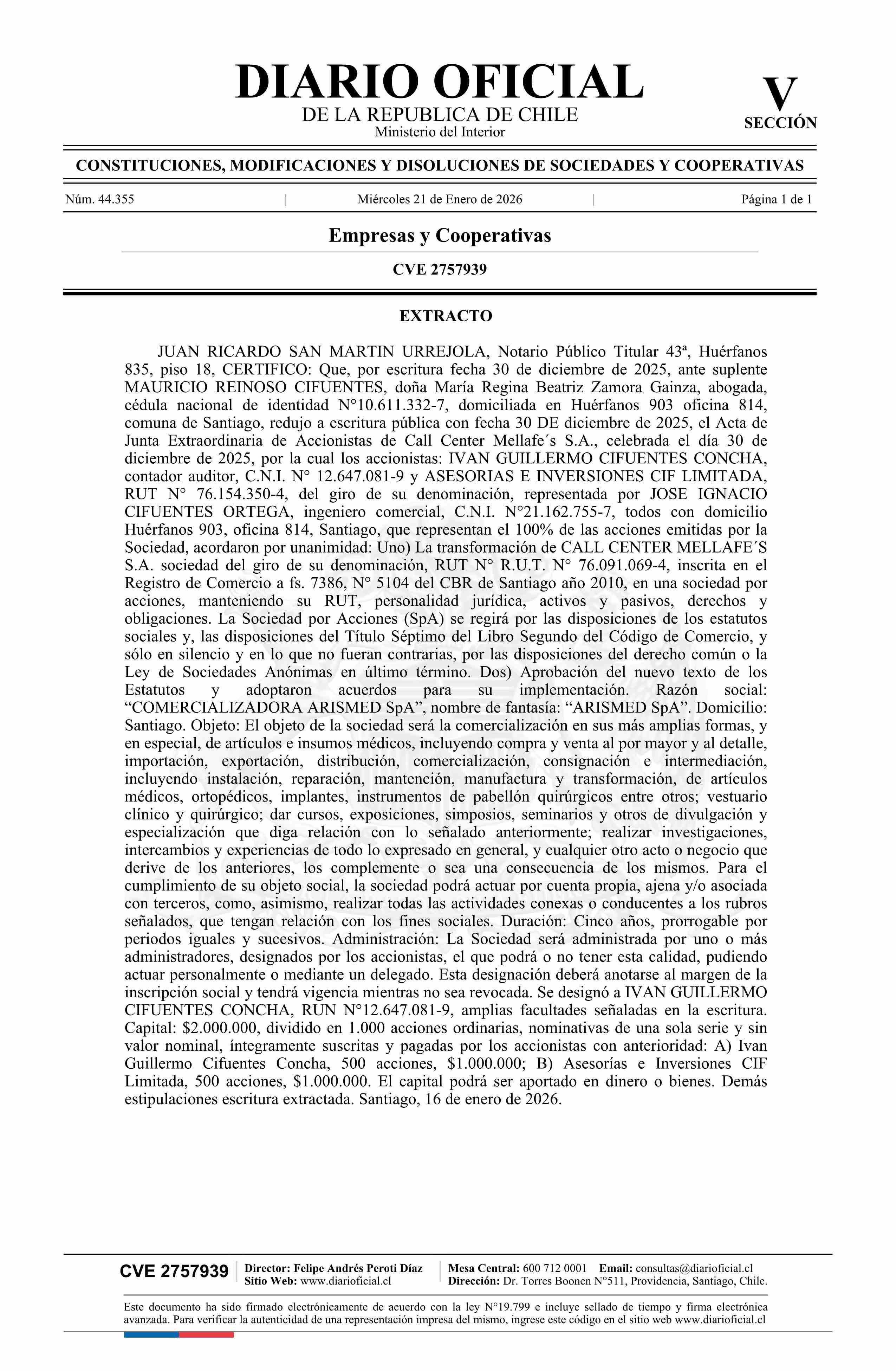 CALL CENTER MELLAFE´S S.A. 76.091.069-4*
