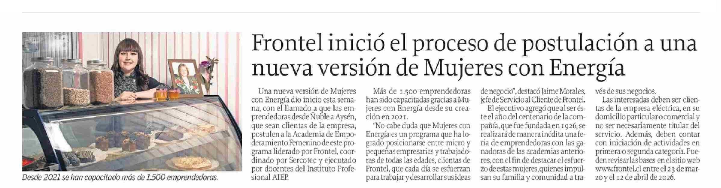 Frontel inició el proceso de postulación a una nueva versión de Mujeres con Energía