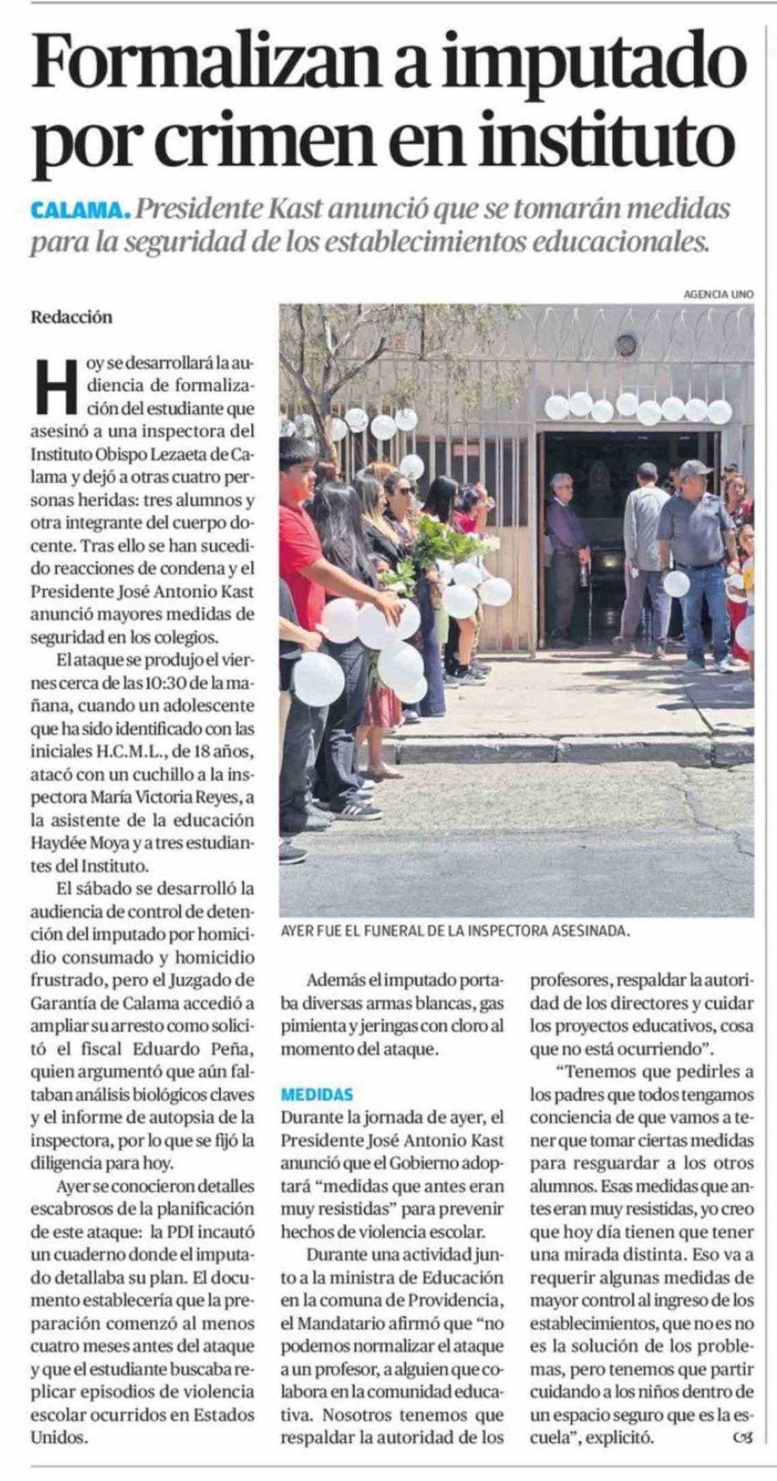 Formalizan a imputado por crimen en instituto