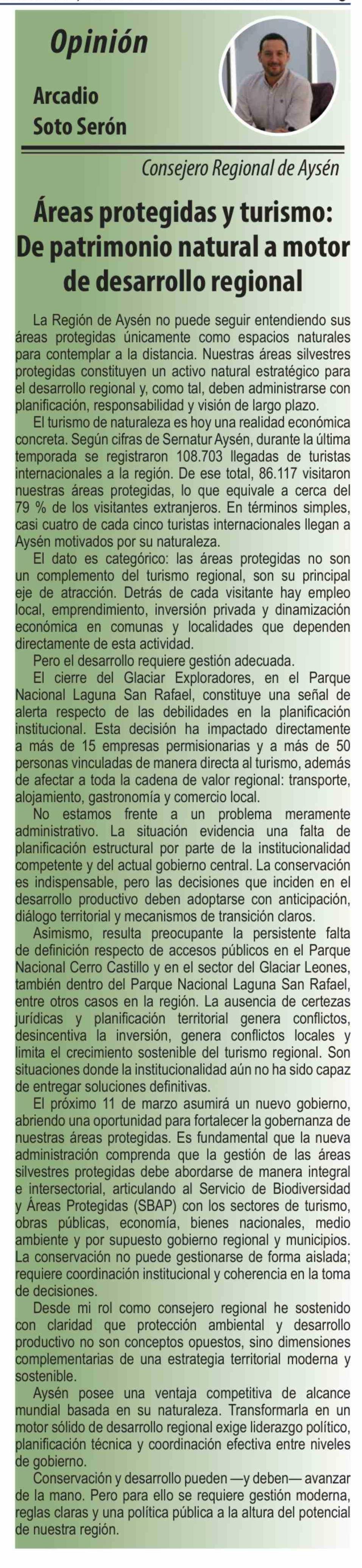 Columnas de Opinión: Áreas protegidas y turismo: De patrimonio natural a motor de desarrollo regional