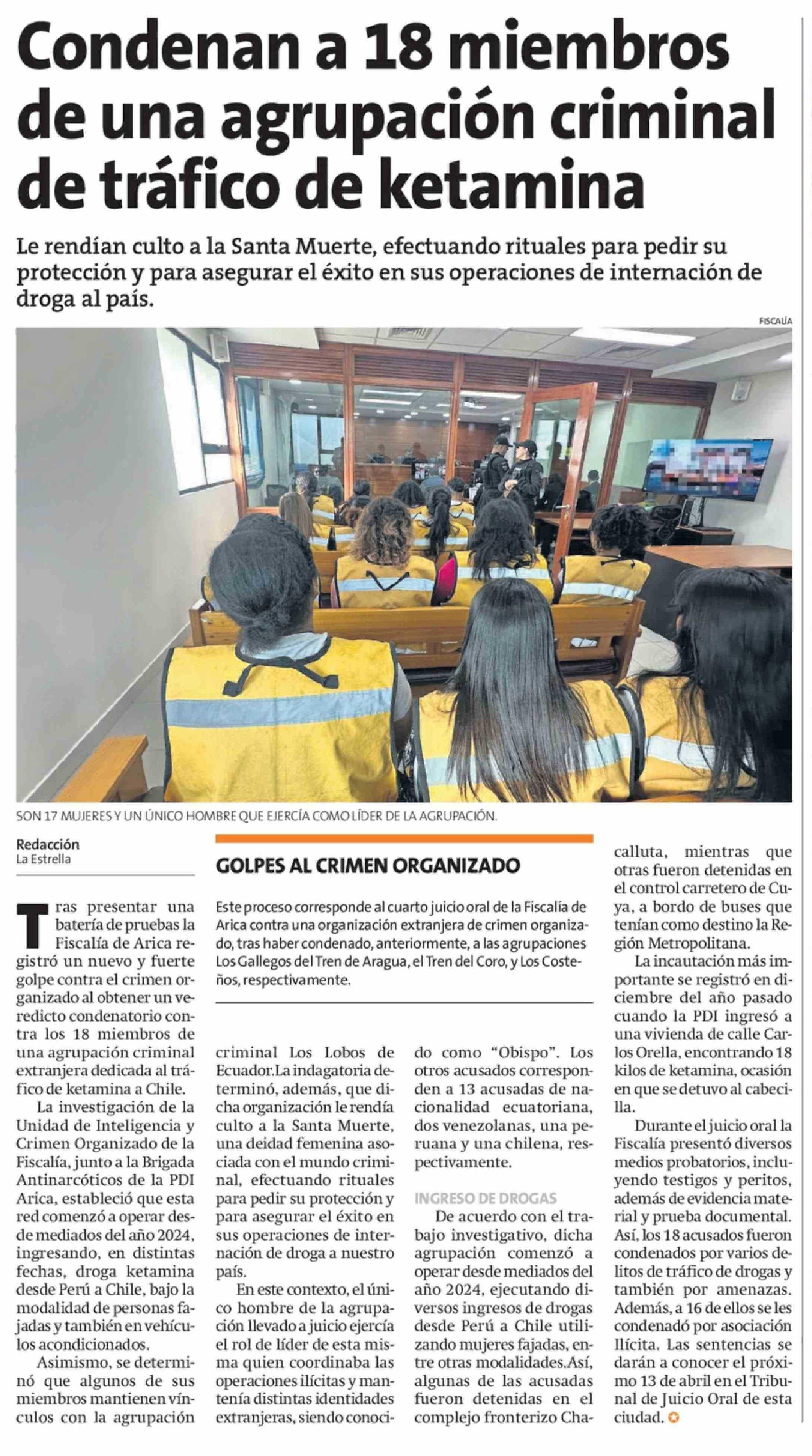 Condenan a 18 miembros de una agrupación criminal de tráfico de ketamina