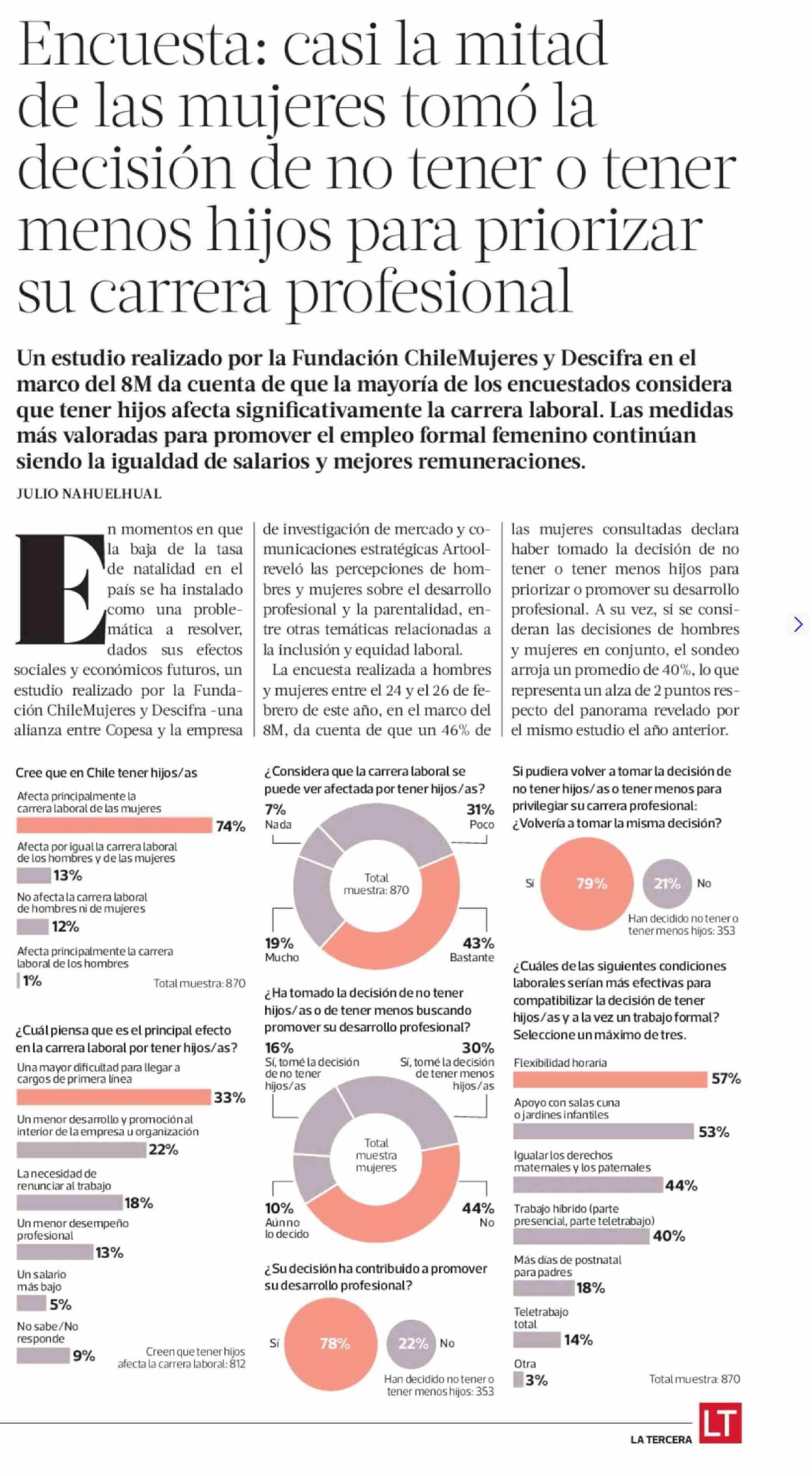 Encuesta: casi la mitad de las mujeres tomó la decisión de no tener o tener menos hijos para priorizar su carrera profesional