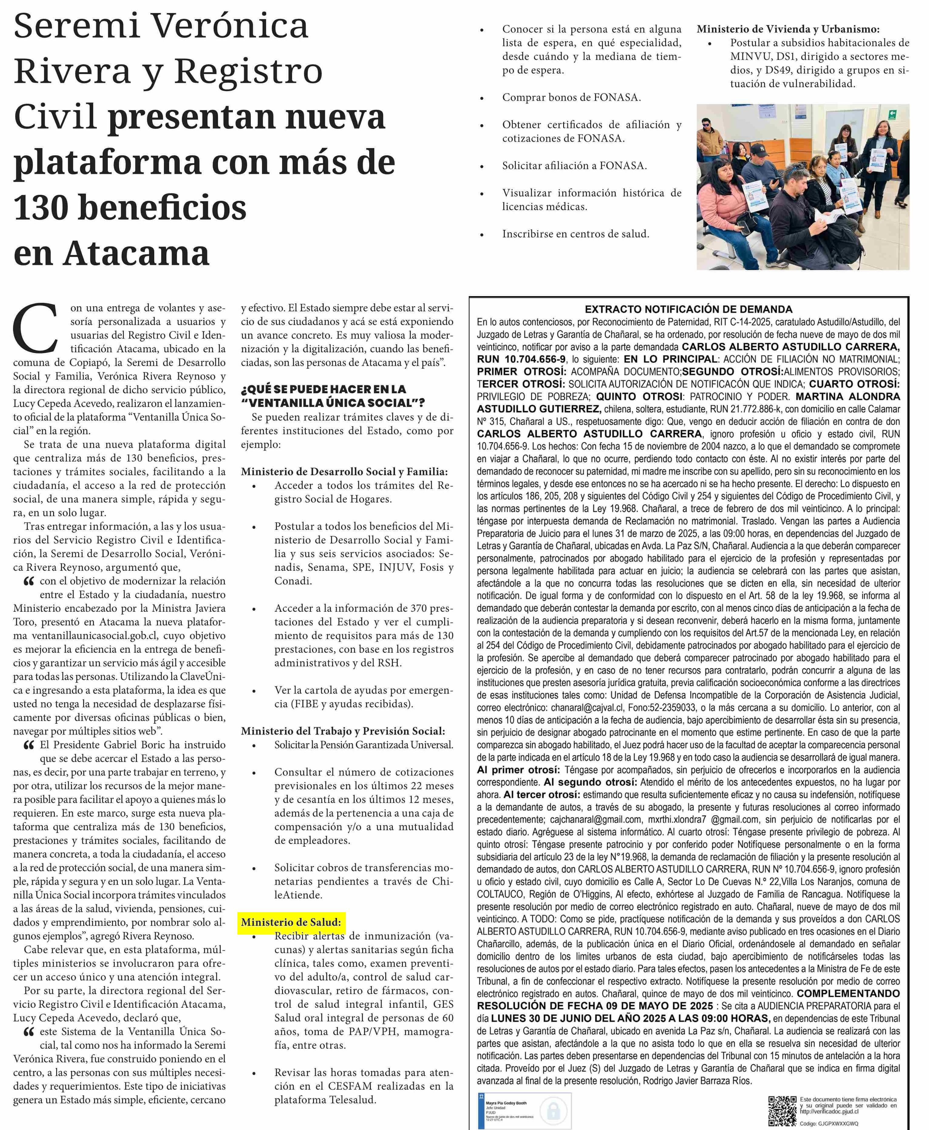 Seremi Verónica Rivera y Registro Civil presentan nueva plataforma con más de 130 beneficios en Atacama