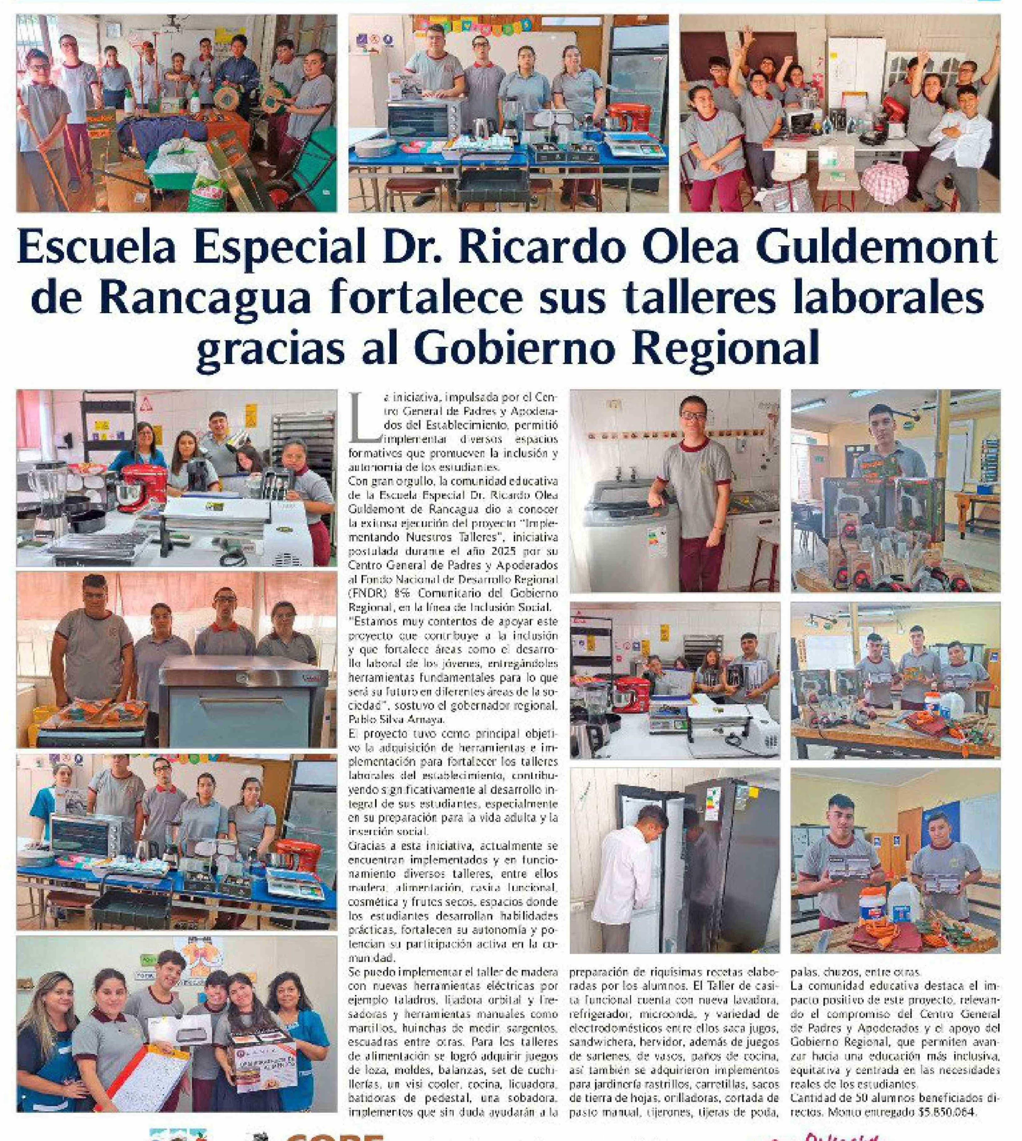 Escuela Especial Dr. Ricardo Olea Guldemont de Rancagua fortalece sus talleres laborales gracias al Gobierno Regional