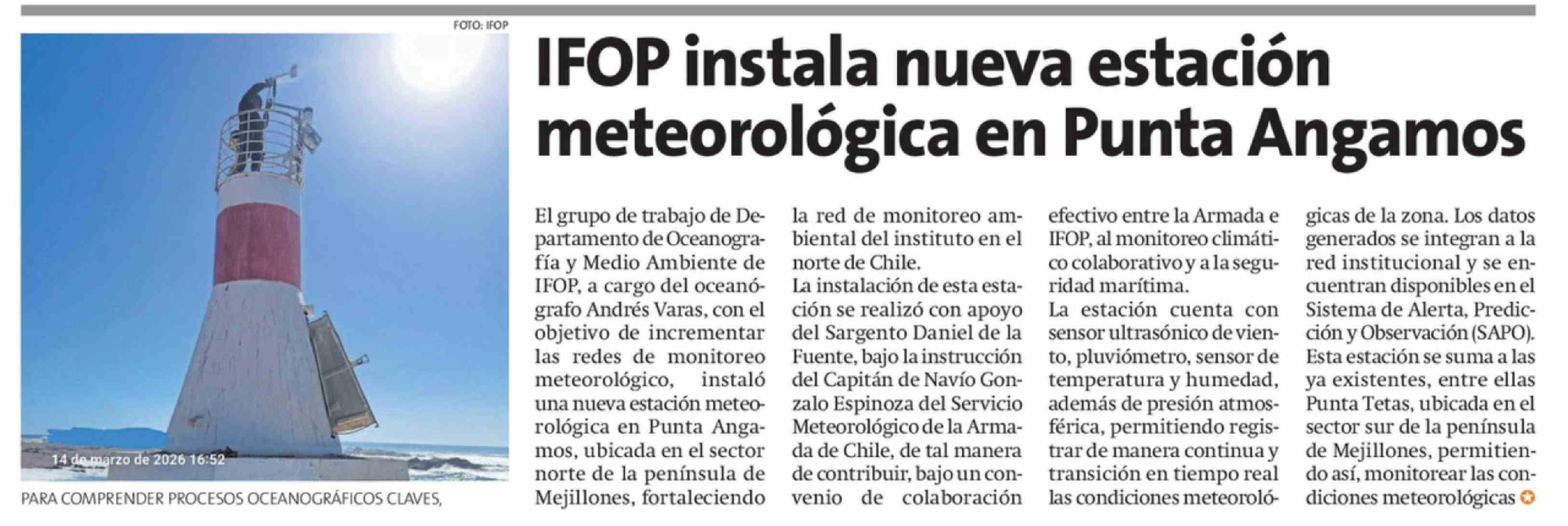IFOP instala nueva estación meteorológica en Punta Angamos
