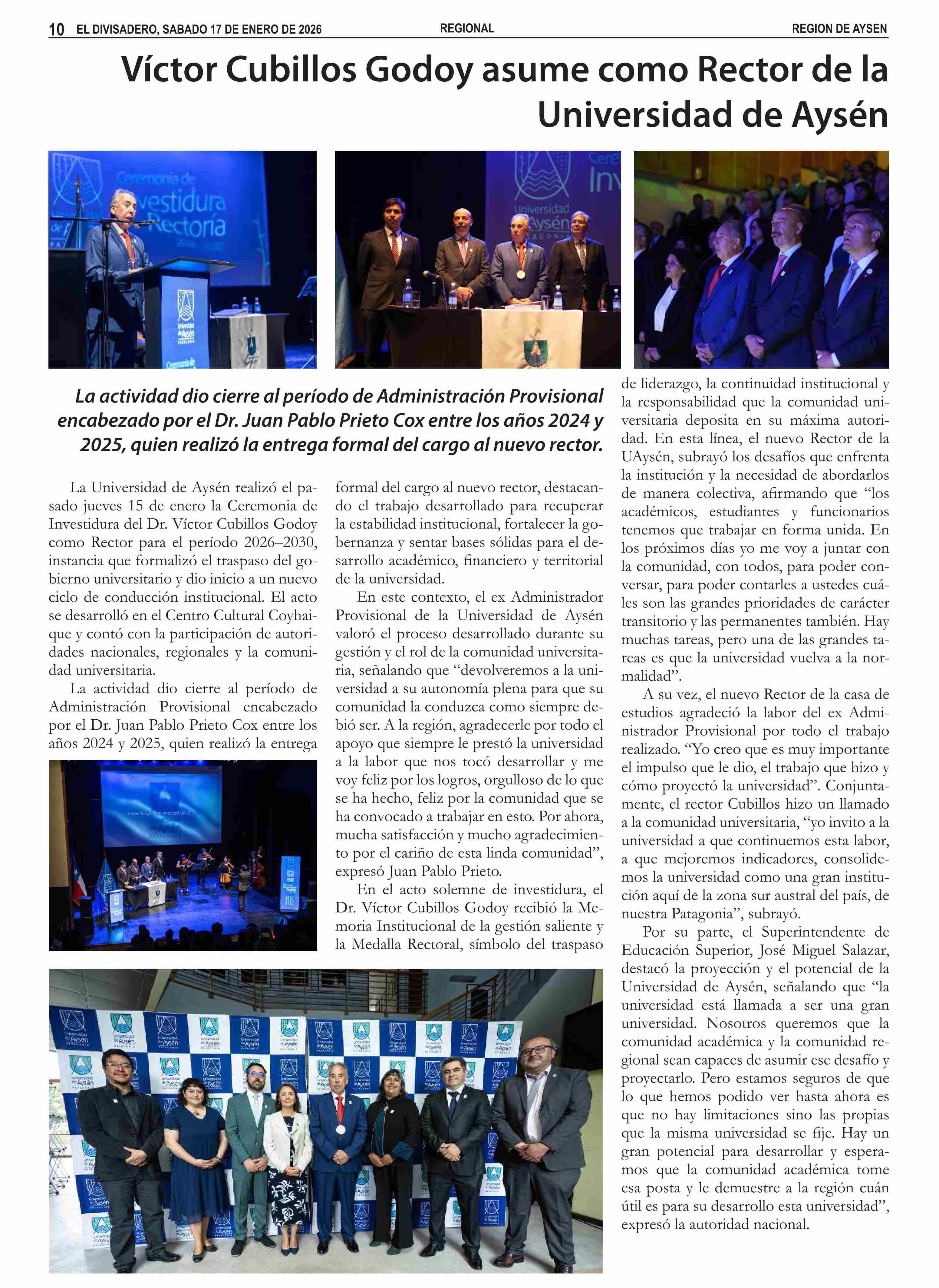 Víctor Cubillos Godoy asume como Rector de la Universidad de Aysén