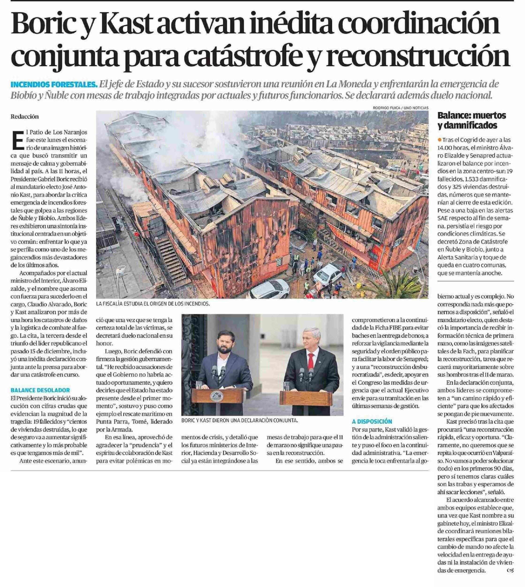 Boric y Kast activan inédita coordinación conjunta para catástrofe y reconstrucción