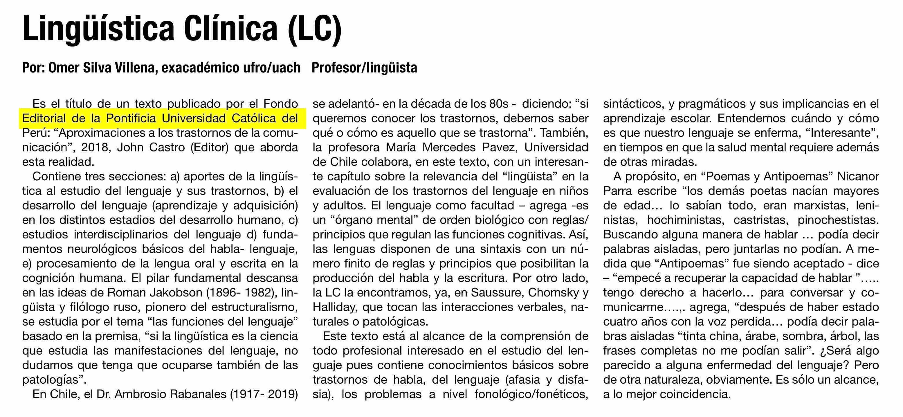 COLUMNAS DE OPINIÓN: Lingüística Clínica (LC)