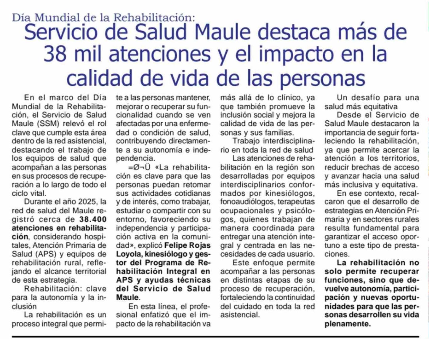 Servicio de Salud Maule destaca más de 38 mil atenciones y el impacto en la calidad de vida de las personas