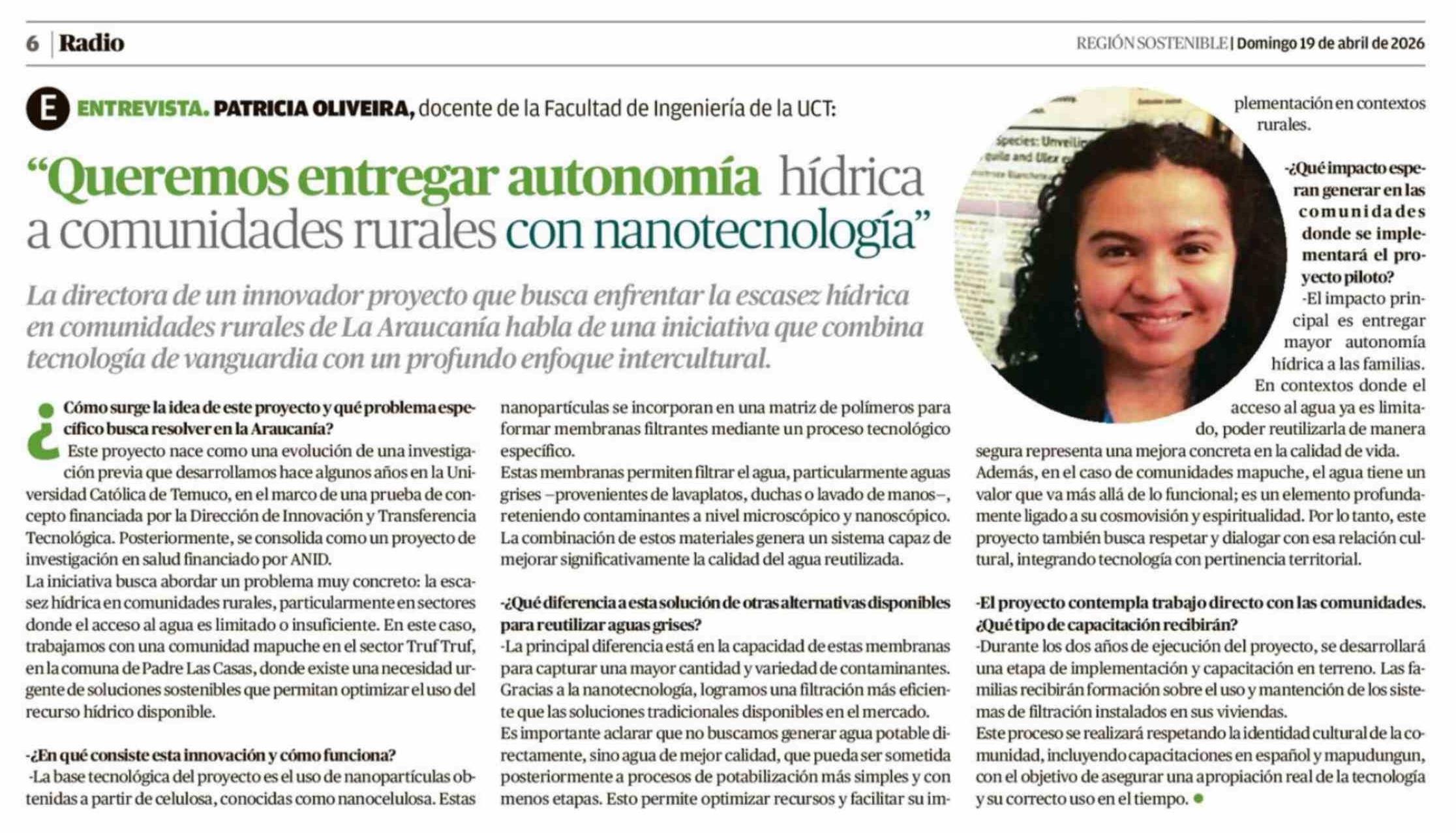 "Queremos entregar autonomía hídrica a comunidades rurales con nanotecnología"