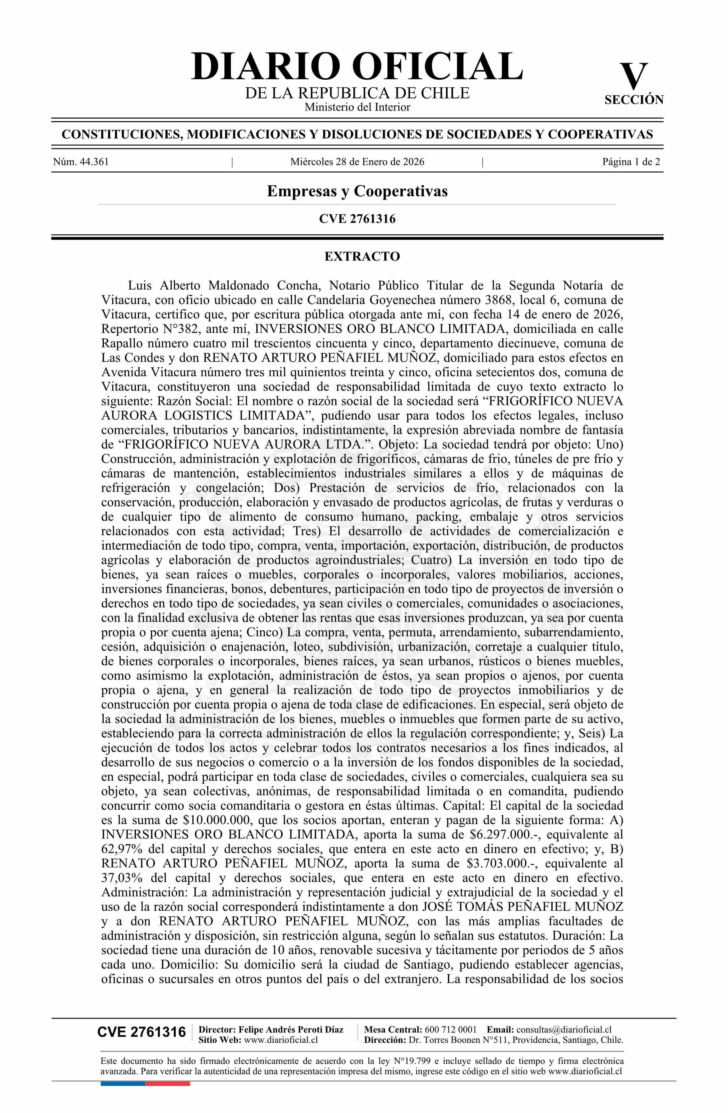 FRIGORÍFICO NUEVA AURORA LOGISTICS LIMITADA