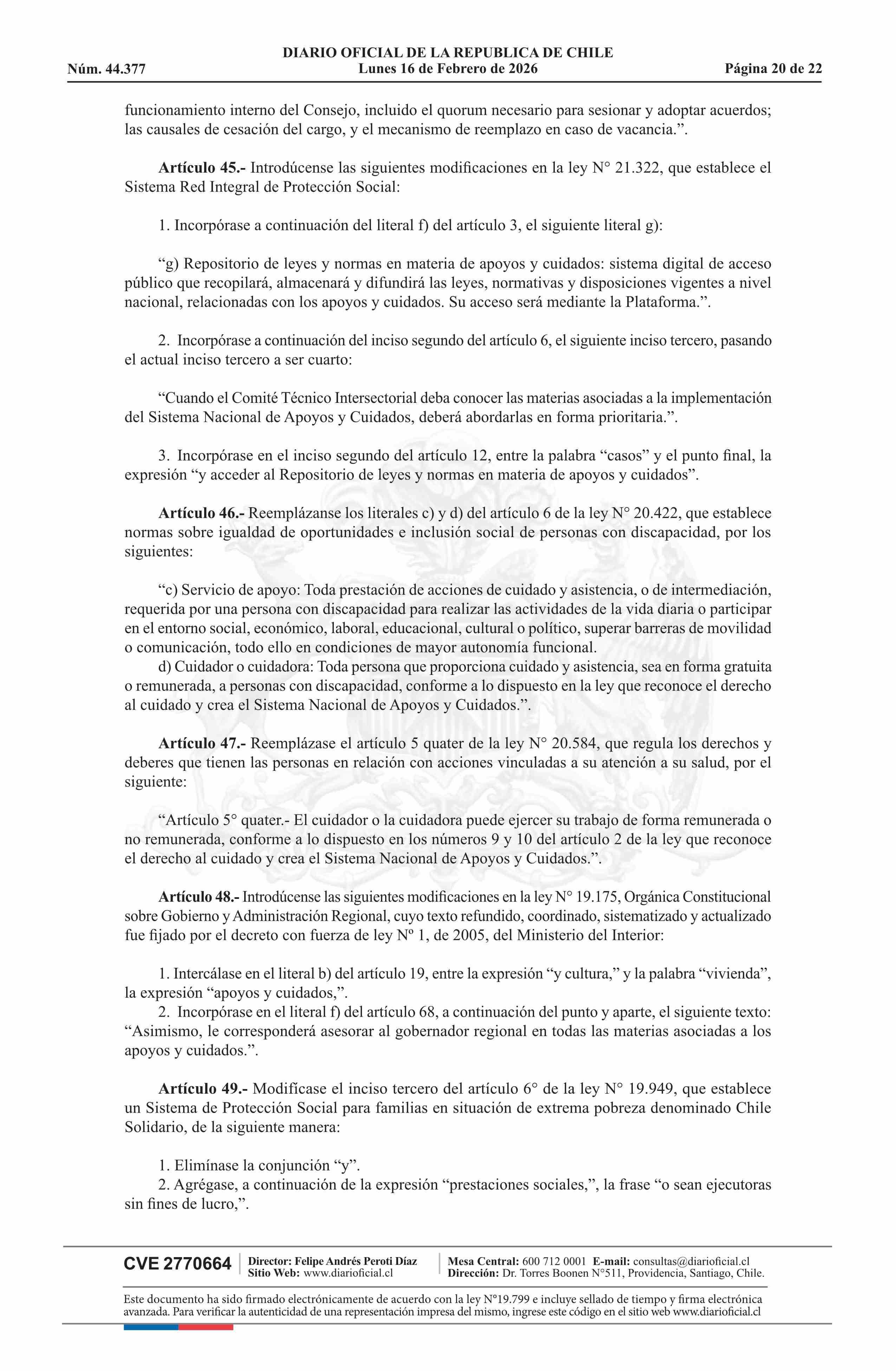 Fuente: Diario Oficial Edición Electrónica (Diario Oficial de Chile - 1 Normas Generales) Página(s): 1-22