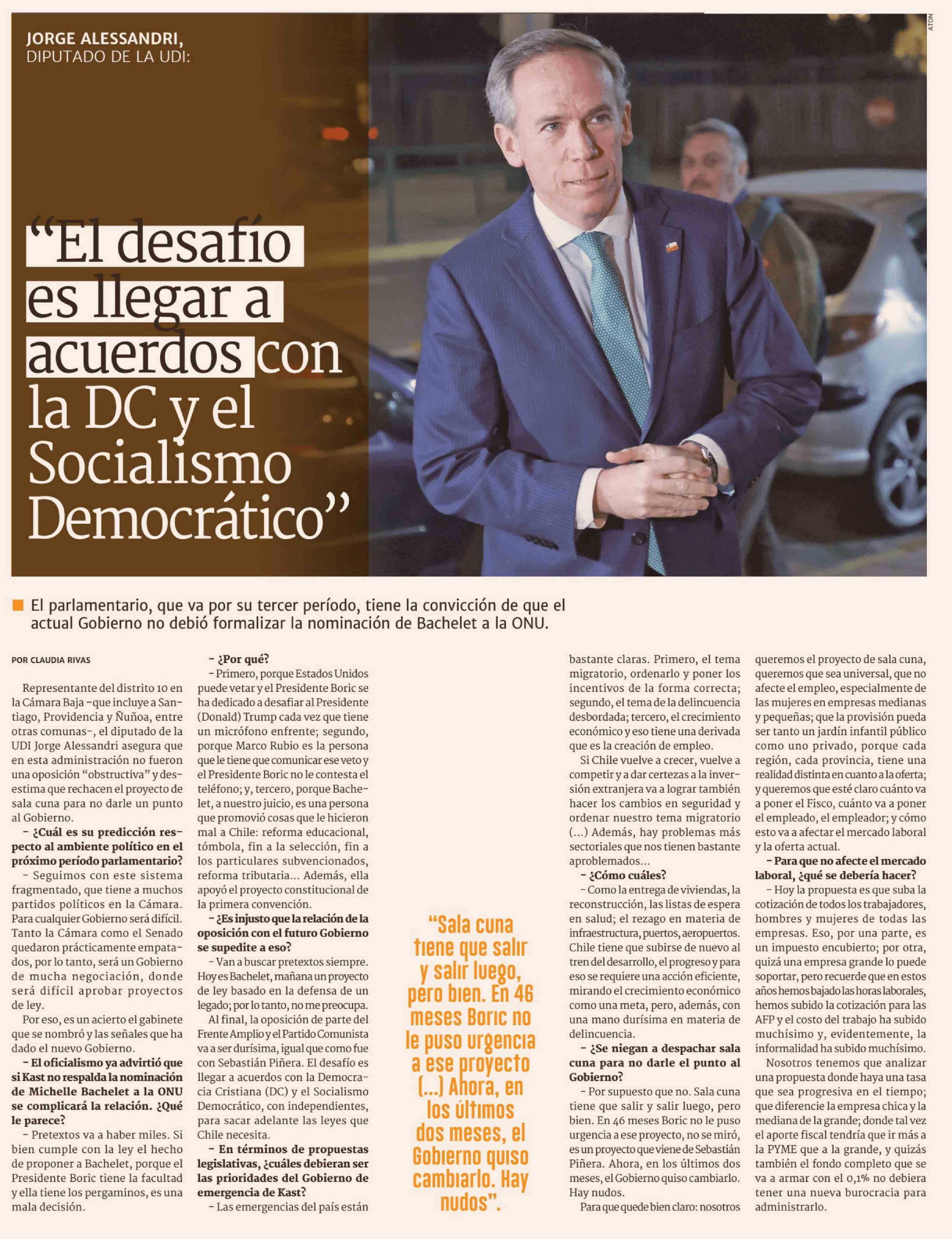 "El desafio es llegar a acuerdos con la DC y el Socialismo Democrático"