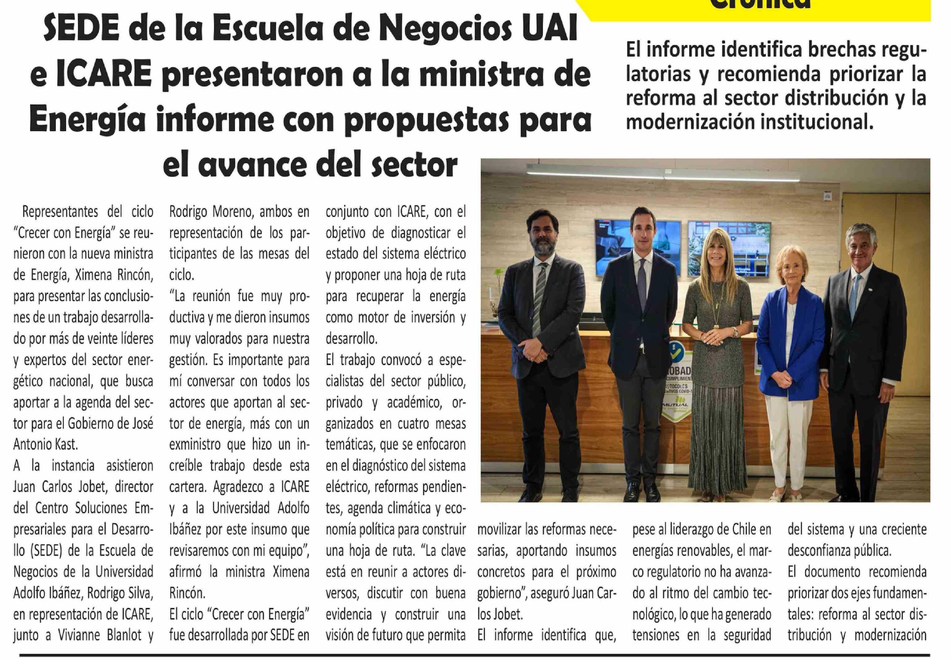 SEDE de la Escuela de Negocios UAI e ICARE presentaron a la ministra de Energía informe con propuestas para el avance del sector