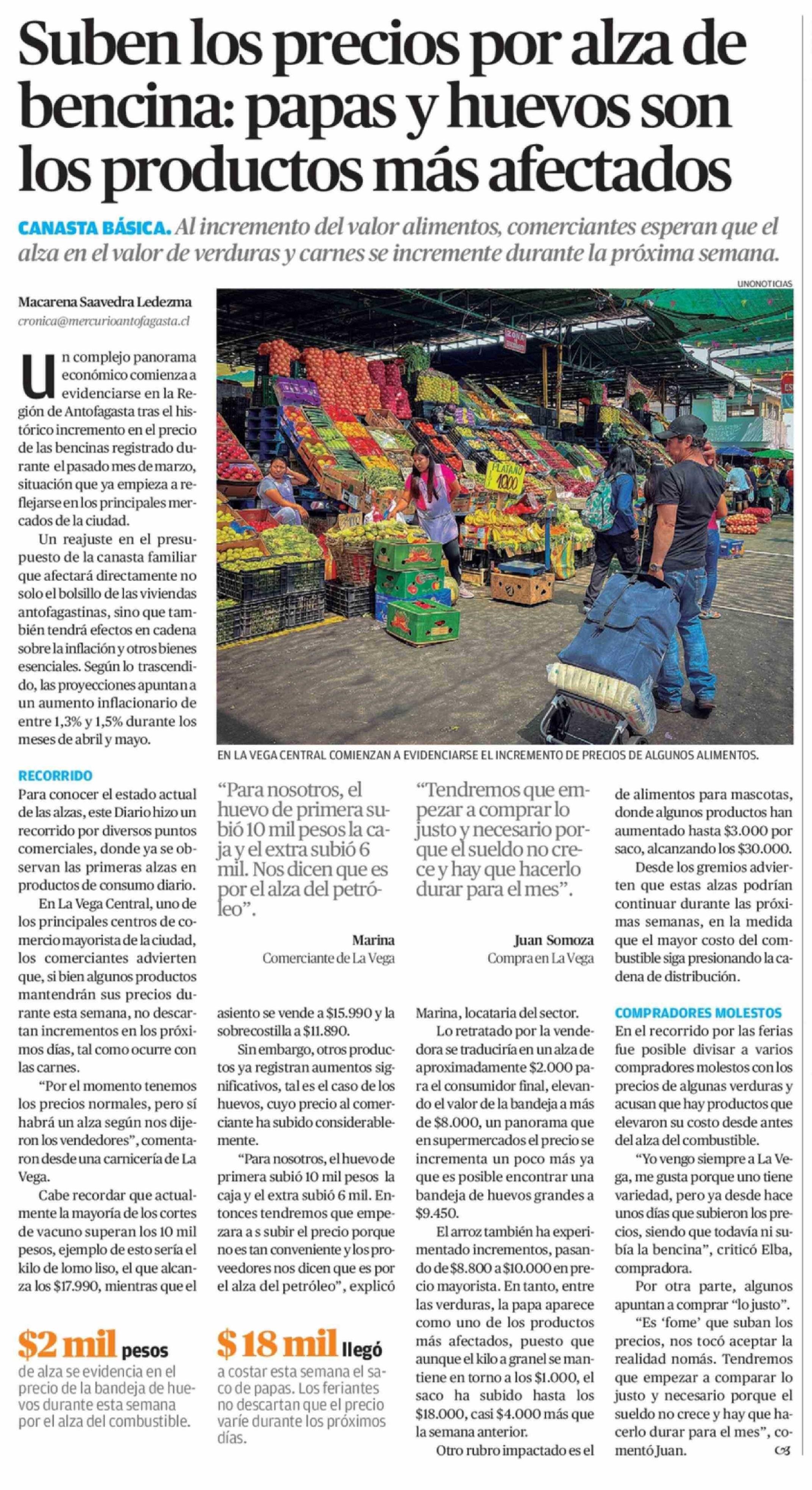 Suben los precios por alza de bencina: papas y huevos son los productos más afectados