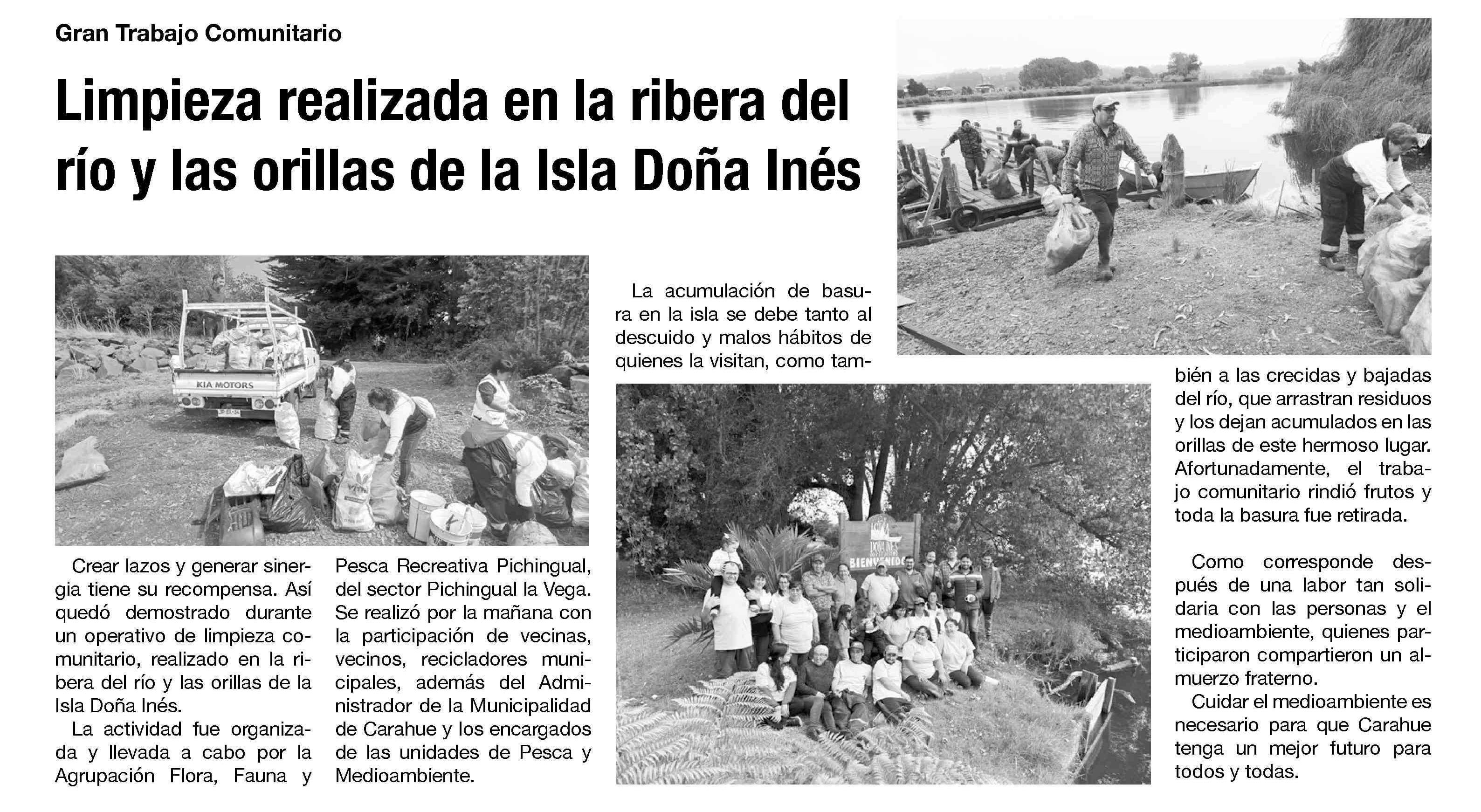 Limpieza realizada en la ribera del río y las orillas de la Isla Doña Inés
