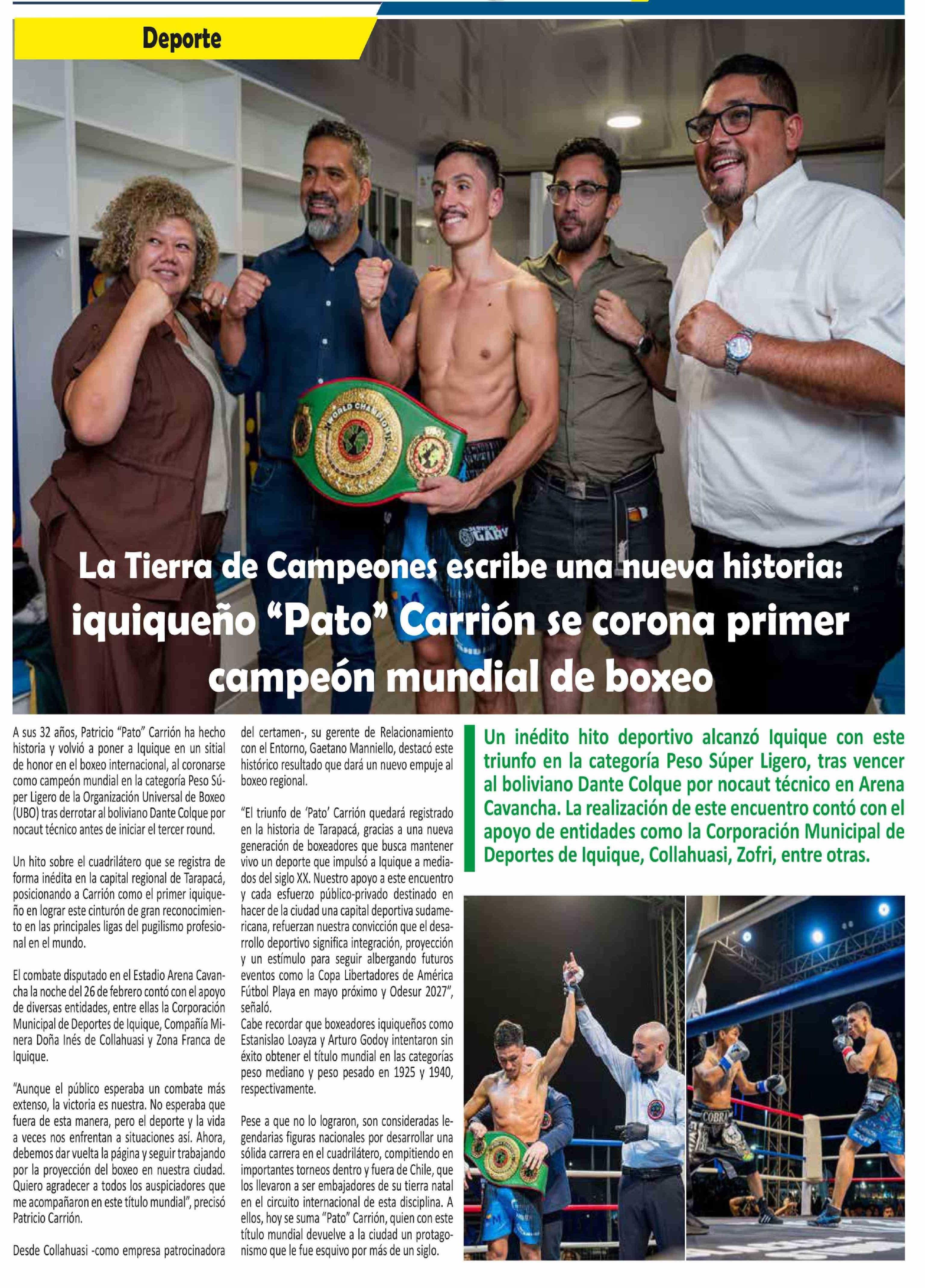 La Tierra de Campeones escribe una nueva historia: iquiqueño "Pato" Carrión se corona primer campeón mundial de boxeo