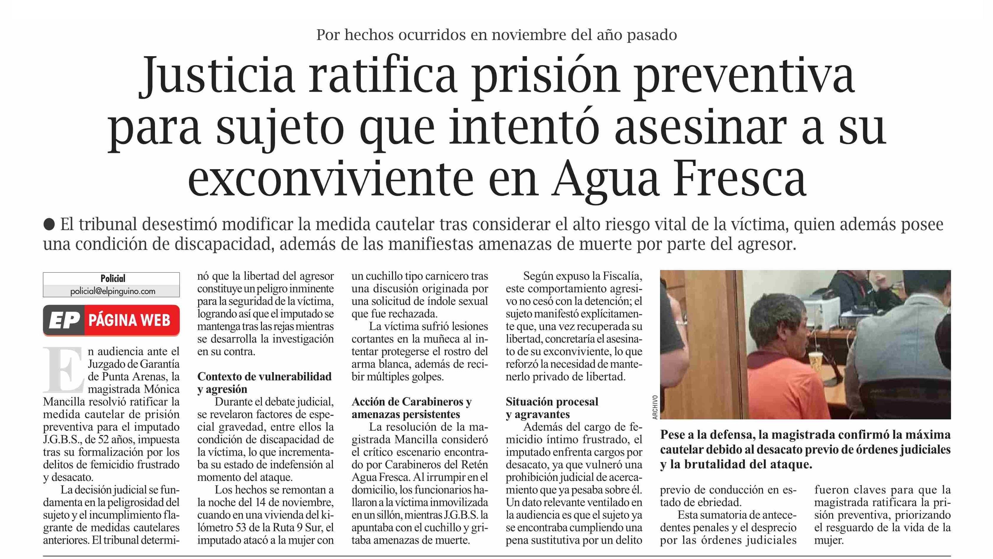 Justicia ratifica prisión preventiva para sujeto que intentó asesinar a su exconviviente en Agua Fresca