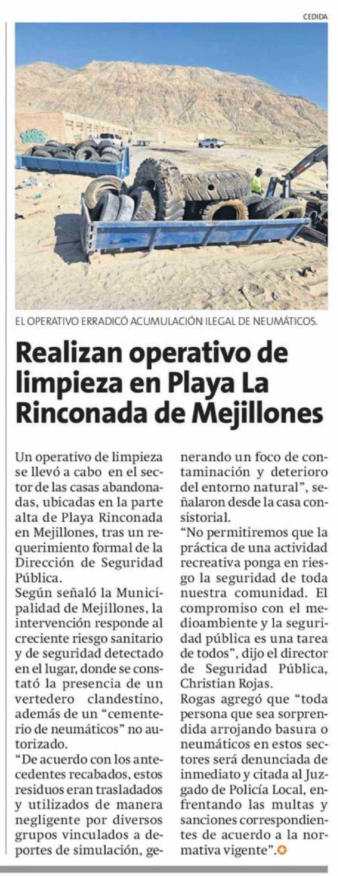 Realizan operativo de limpieza en Playa La Rinconada de Mejillones