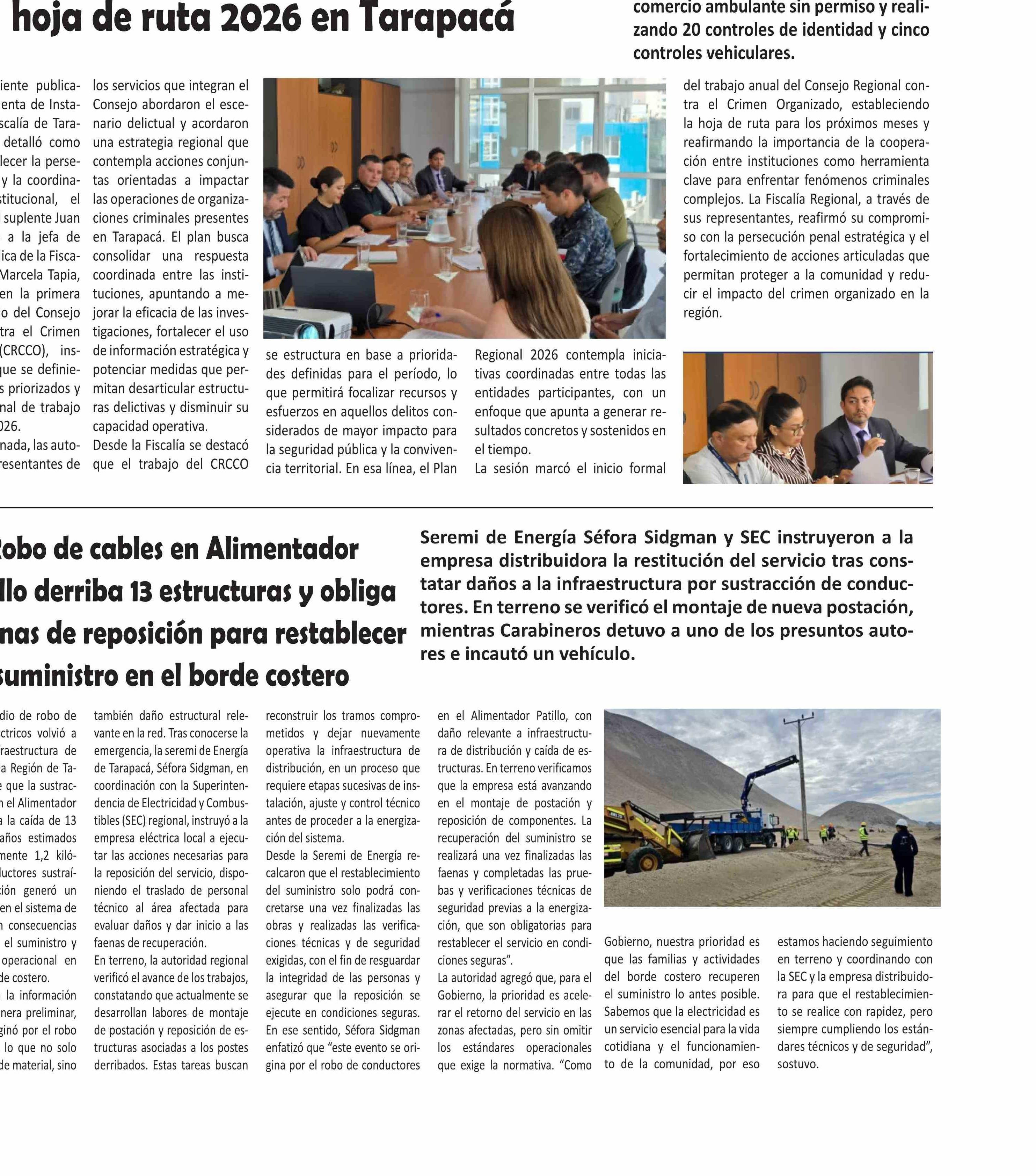 Consejo Regional contra el Crimen Organizado define delitos priorizados y hoja de ruta 2026 en Tarapacá