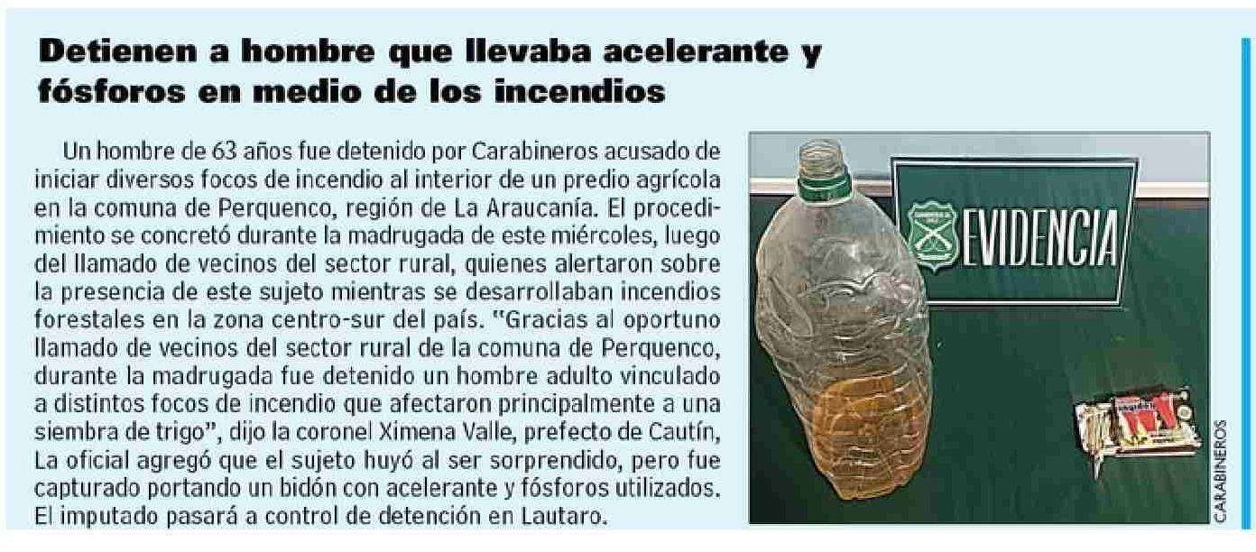 Detienen a hombre que llevaba acelerante y fósforos en medio de los incendios