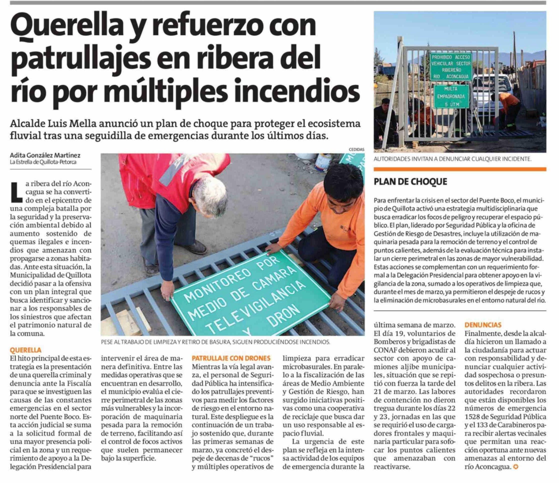 Querella y refuerzo con patrullajes en ribera del río por múltiples incendios