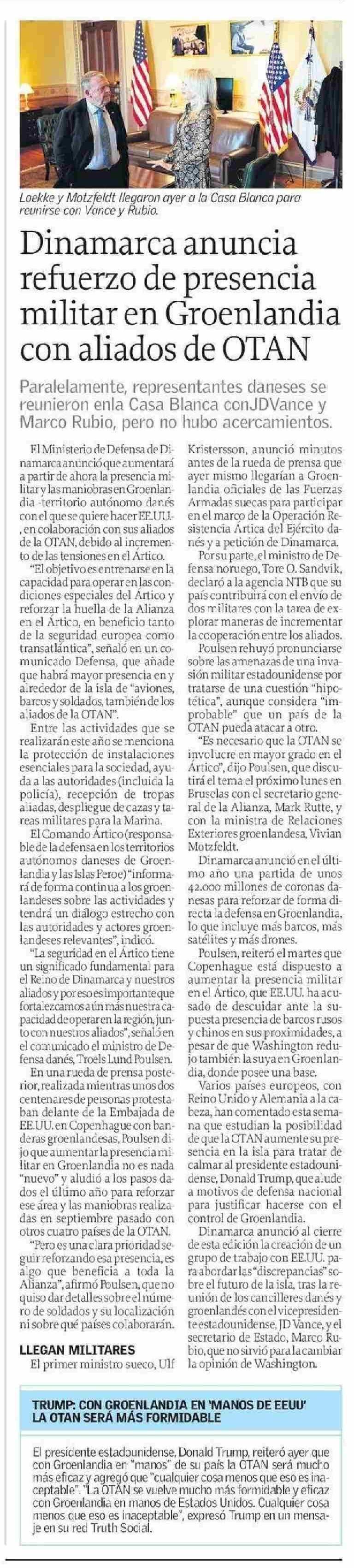 Dinamarca anuncia refuerzo de presencia militar en Groenlandia con aliados de OTAN