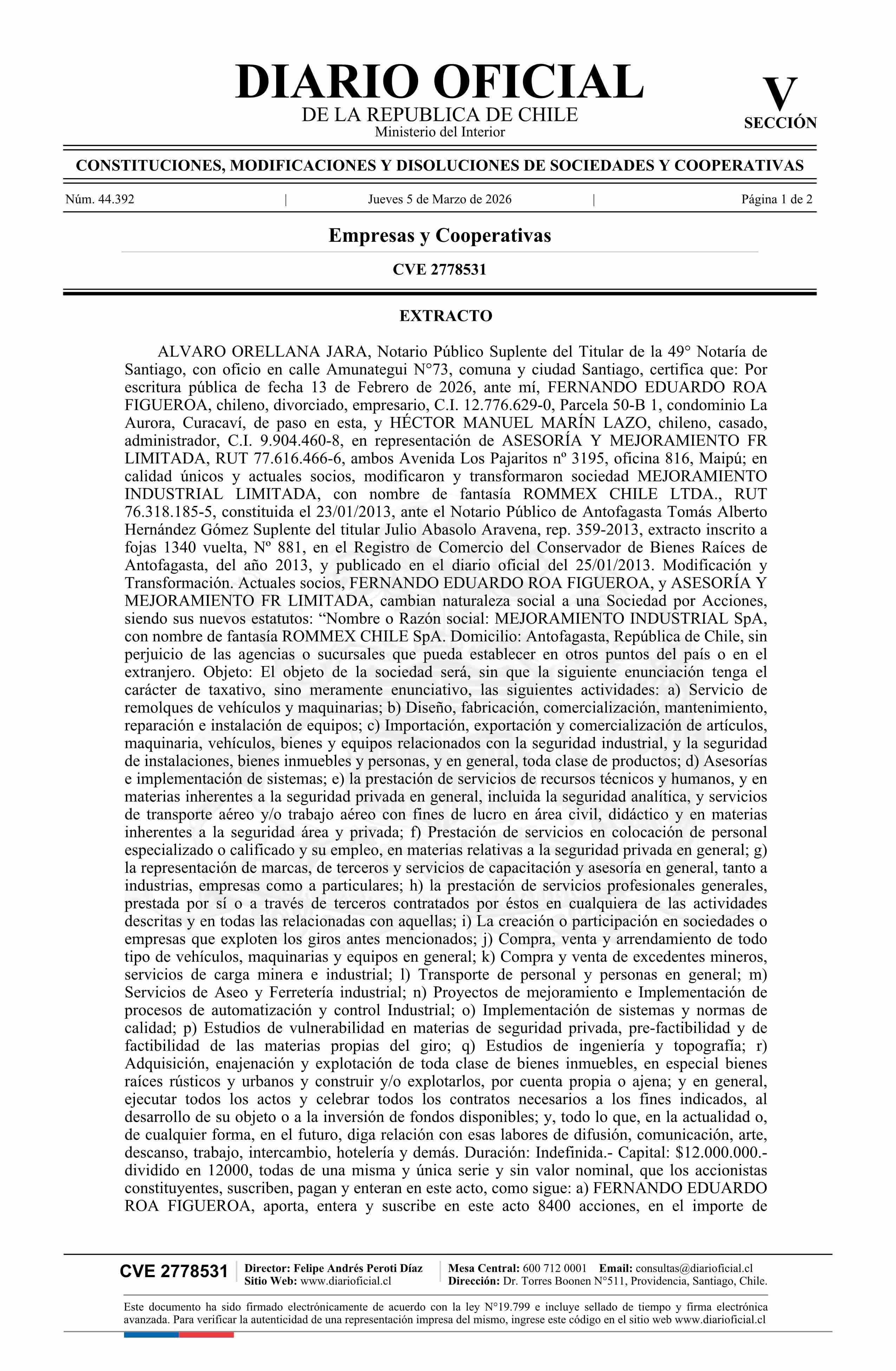Diario Oficial Edición Electrónica (Diario Oficial de Chile - 5 Empresas Y Cooper)