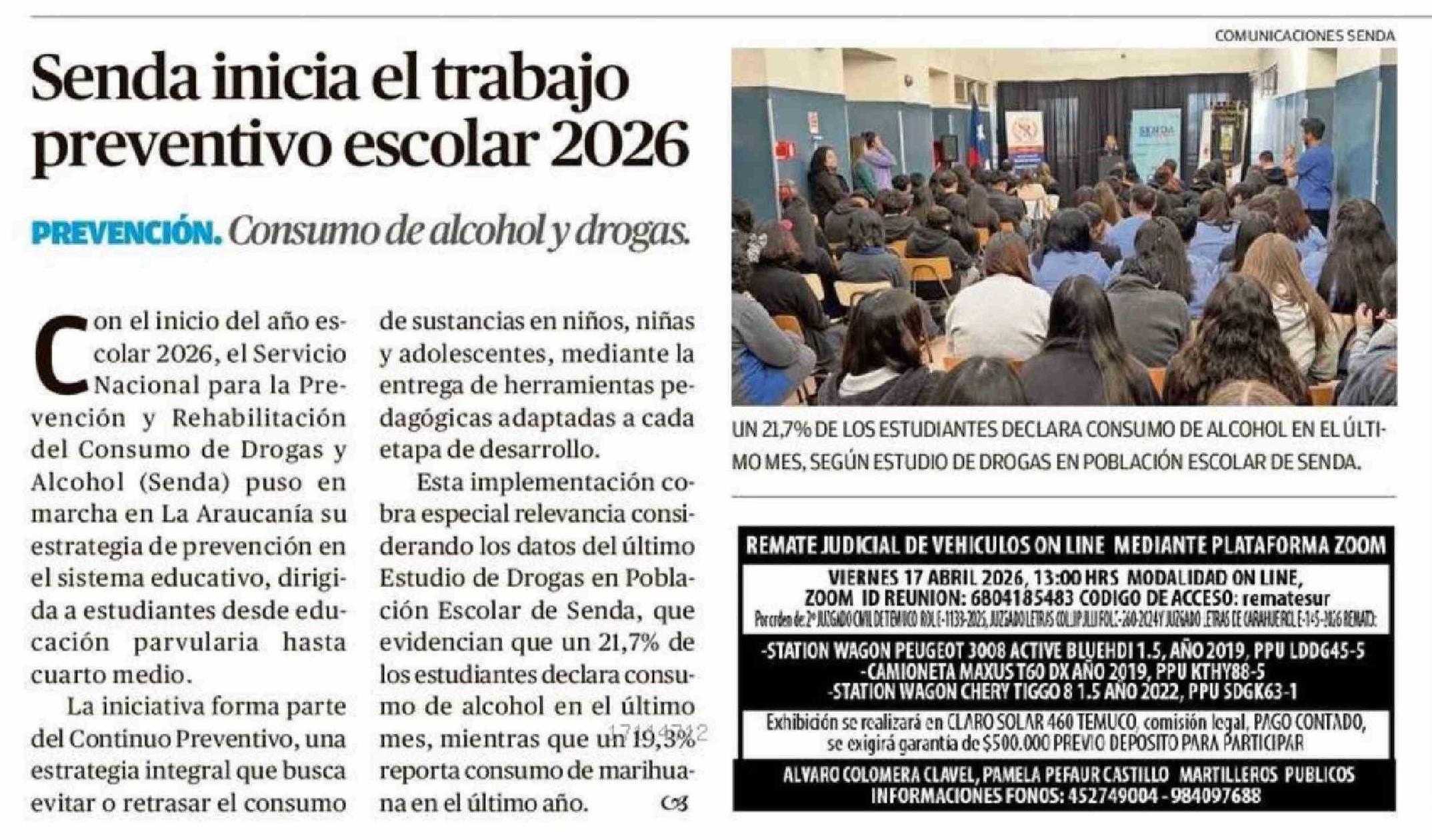 Fecha: 16-04-2026 Sector: Noticia general Región: Región de la Araucanía
