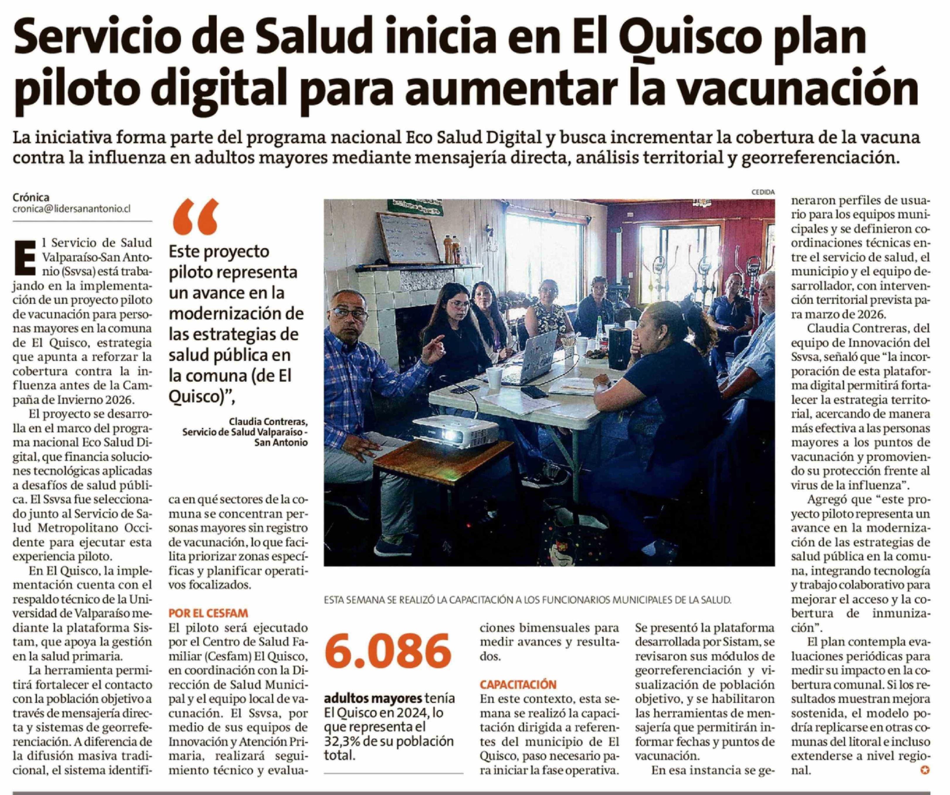 Servicio de Salud inicia en El Quisco plan piloto digital para aumentar la vacunación