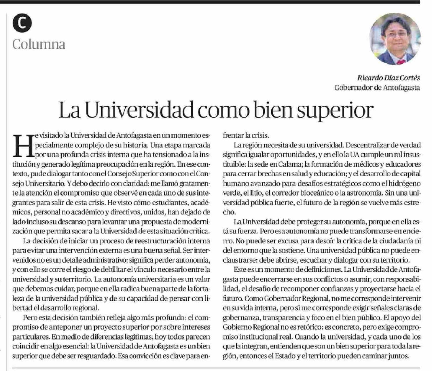 Columnas de Opinión: La Universidad como bien superior