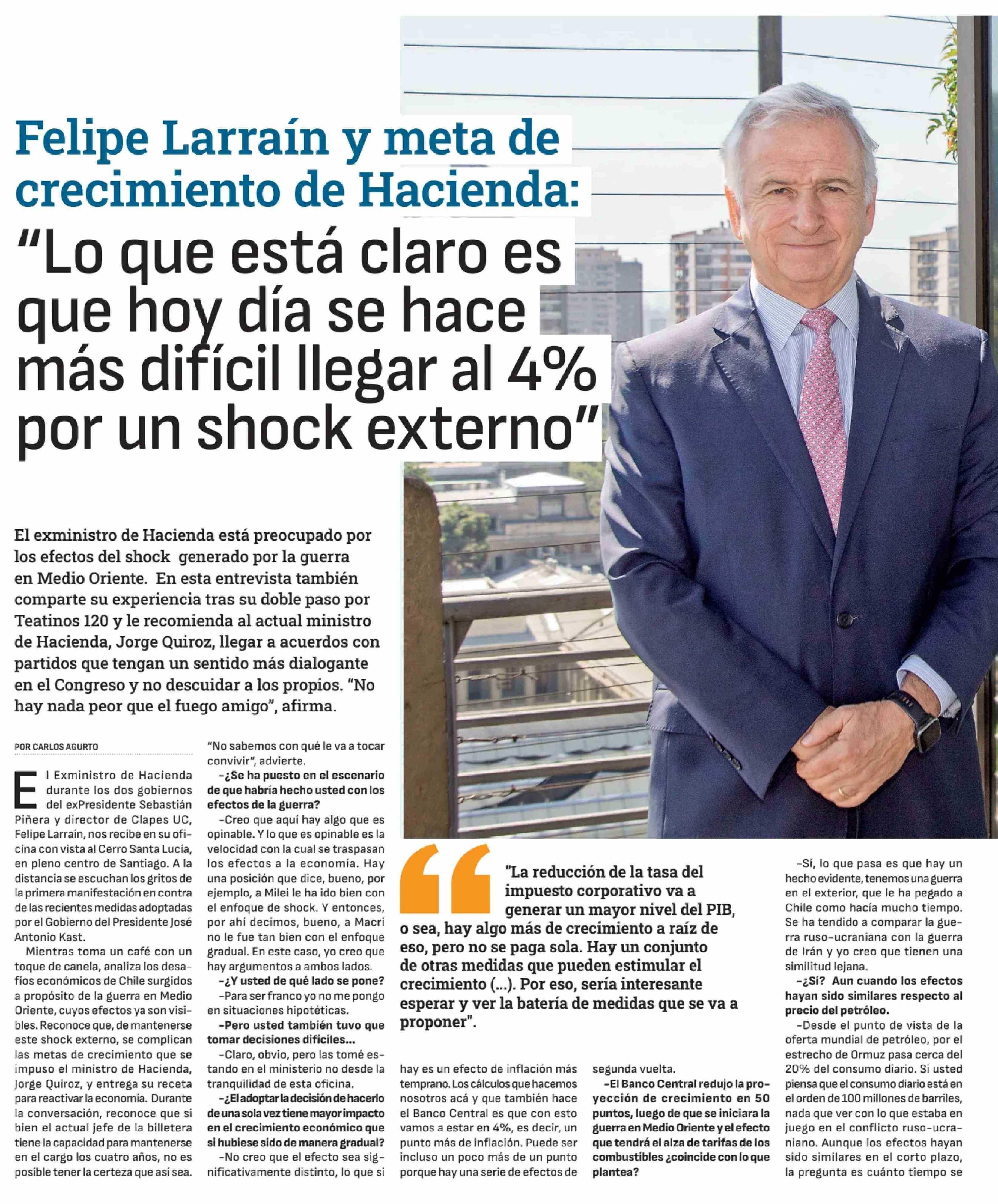 Título: Felipe Larraín y meta de crecimiento de Hacienda: "Lo que está claro es que hoy día se hace más difícil llegar al 4% por un shock externo"