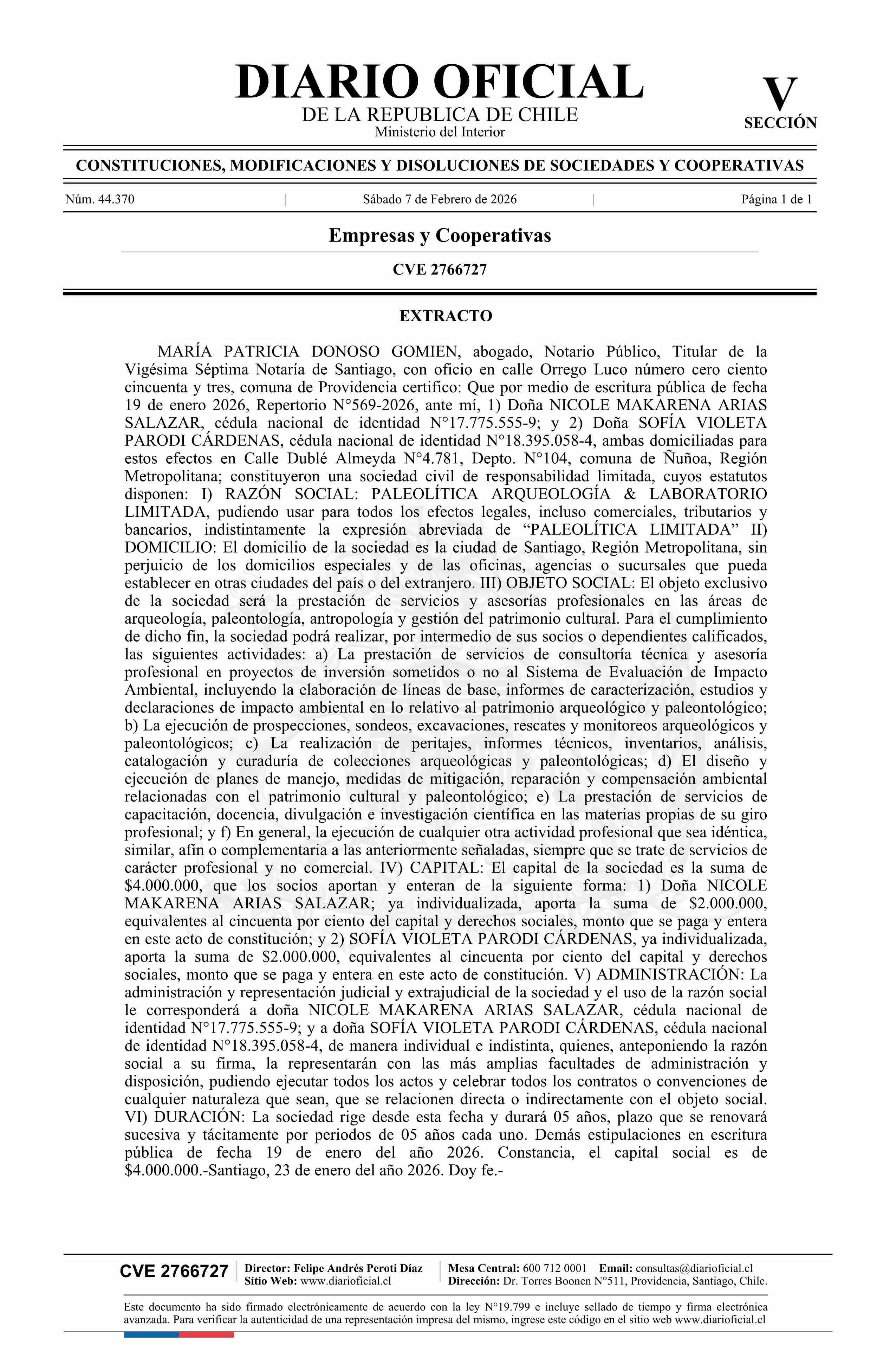 PALEOLÍTICA ARQUEOLOGÍA & LABORATORIO LIMITADA