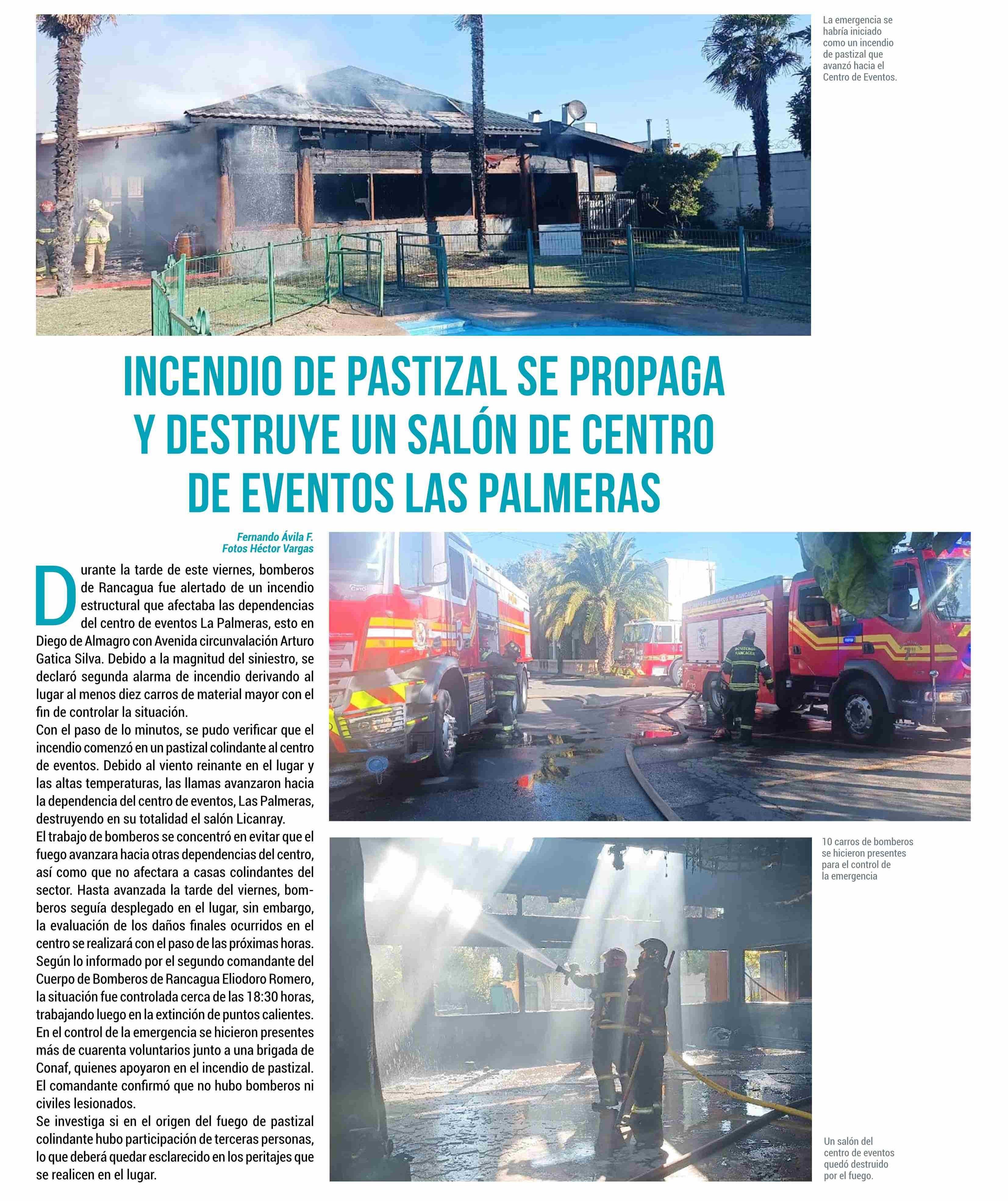 INCENDIO DE PASTIZAL SE PROPAGA Y DESTRUYE UN SALÓN DE CENTRO DF EVENTOS LAS PALMERAS