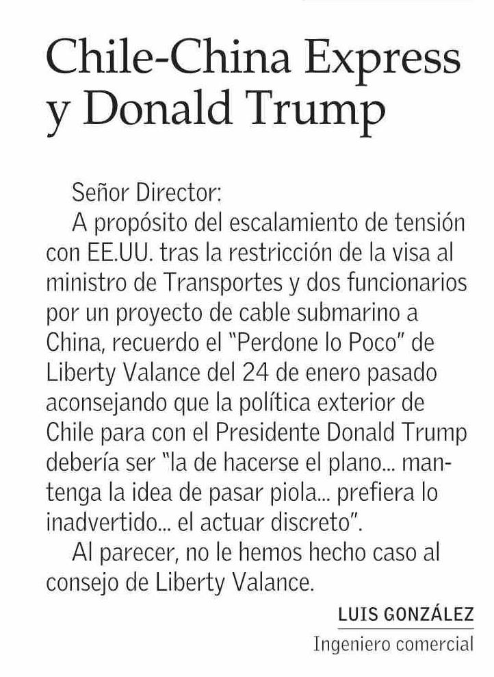 CARTAS: Chile-China Express y Donald Trump