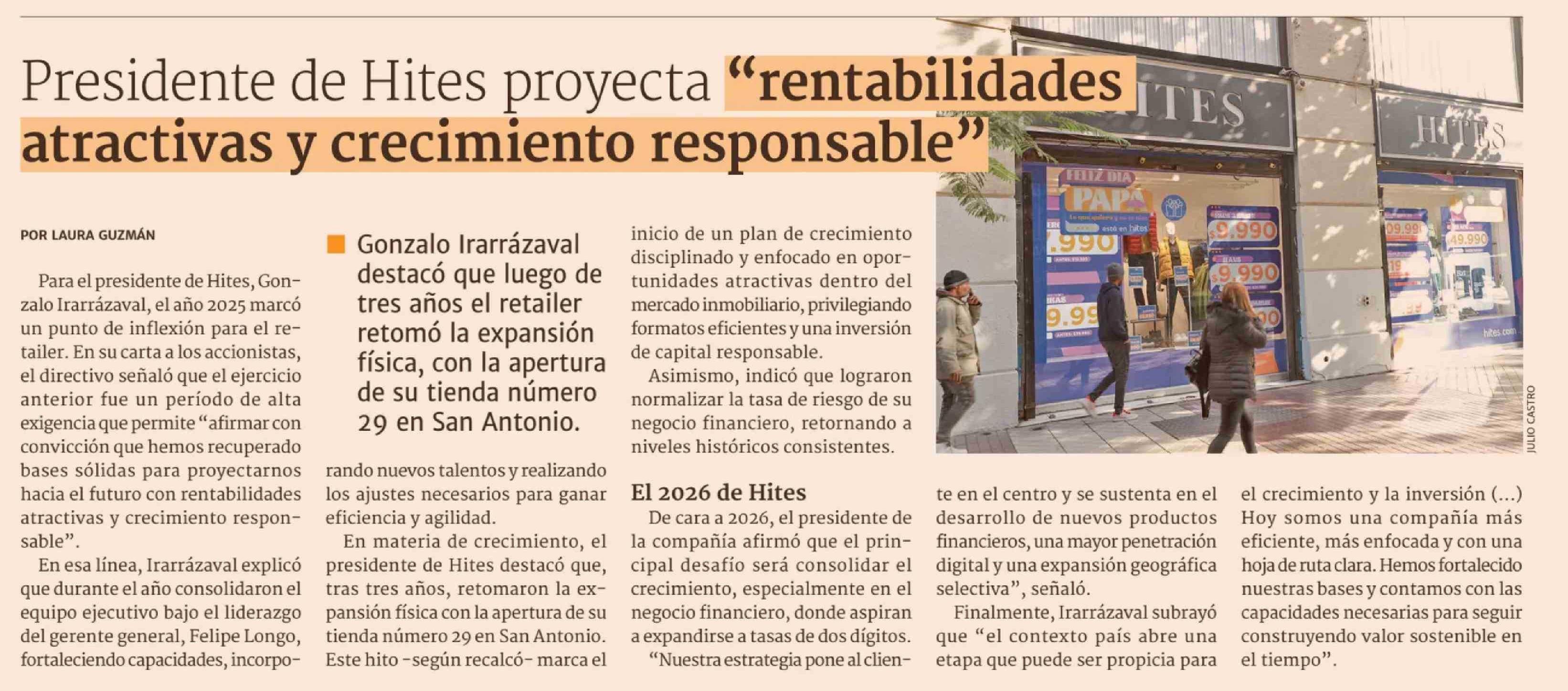 Presidente de Hites proyecta "rentabilidades ITES atractivas y crecimiento responsable"